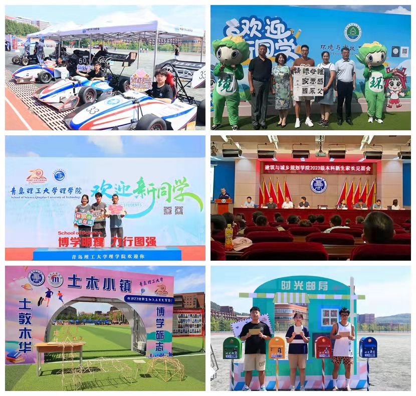 在各个迎新报到点,迎新展板、条幅、新生入学礼、标识……各学院纷纷使出迎新“大招”,安排了创意满满、亮点纷呈的迎新活动。土木工程学院现场赠送红色书籍、学生现场亲手搭建“70周年”结构模型,开展指纹树制作等活动。机械与汽车工程学院现场展示了大学生方程式赛车,学生现场组装“慧鱼”竞赛模型,科创氛围浓厚。建筑与城乡规划学院开展了新生家长见面会、给家长的第一封家书活动,结合专业特色开展传统木作体验。环境与市政工程学院开展“敬茶谢父母”活动,将感恩教育、新生入学教育与迎新报到有机融合。信息与控制工程学院将学科竞赛、智能车、机器人等现场植入,设置LED大屏实现师生隔屏互动,开展“时光邮筒”——给自己的一封信活动。理学院为新生定制了专属的“学霸布袋”,设置留言打卡、合影、转盘抽奖等活动赢取定制抱枕、钥匙扣和校庆徽章等礼品。管理工程学院用527名新生照片组成“你好新同学”,用最热烈的方式欢迎所有新生。商学院创新打造“商院新生节”,为新生庆祝生日,设置党史长廊、专业展示长廊,开展传统文化游园打卡活动。人文与外国语学院通过现场书法创作给新生赠送祝福团扇、书签等。艺术与设计学院不仅准备了定制签名墙、学院卡通形象,每一名新生拍照,记录下报到的难忘时刻。