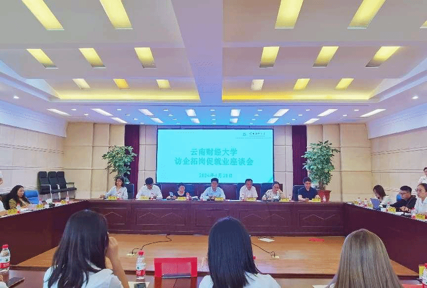 为切实落实“访企拓岗促就业”专项行动计划,加强校企之间的合作关系,促进毕业生更充分更高质量就业,4月28日下午,校党委委员、副校长李正彪与云南白药集团、云南龙润集团、前程伟业人力资源管理有限责任公司、健之佳医药连锁集团、云锡控股有限责任公司、沃尔玛百货有限责任公司、嘉华食品有限责任公司、行知北教育投资有限责任公司等12家企业负责人在致远楼415会议室举行座谈。会议由william威廉中文官网商学院党委书记王敏主持。