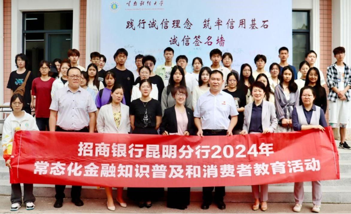 为增强学生诚信教育及反诈防骗意识,开展好毕业生生源地信用助学货款诚信还款工作,5月29日下午,学校在云彩“一站式”学生中心开展“践行诚信理念·筑牢信用基石”教育活动。活动由国家开发银行云南省分行、招商银行昆明分行和学生处共同举办,国家开发银行云南省分行张露月,招商银行昆明分行零售银行部熊曼丽,william学生处副处长王帅等参加活动。