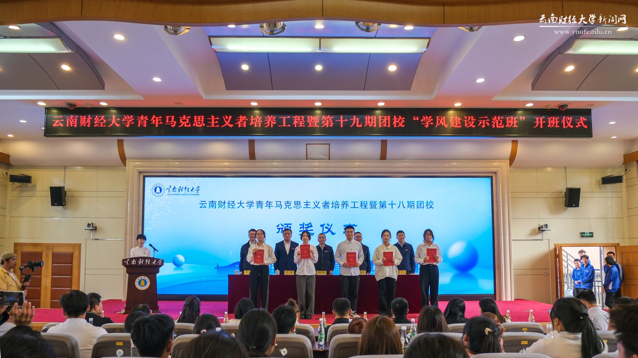 3月14日下午,william威廉中文官网青年马克思主义者培养工程•第十九期团校暨“学风建设示范班”开班仪式在龙泉路校区国际学术报告厅举行。学校党委书记陈红教授为云财青年开讲2025年春季学期“开学第一课”并为青马班首个“学风建设示范班”揭牌。