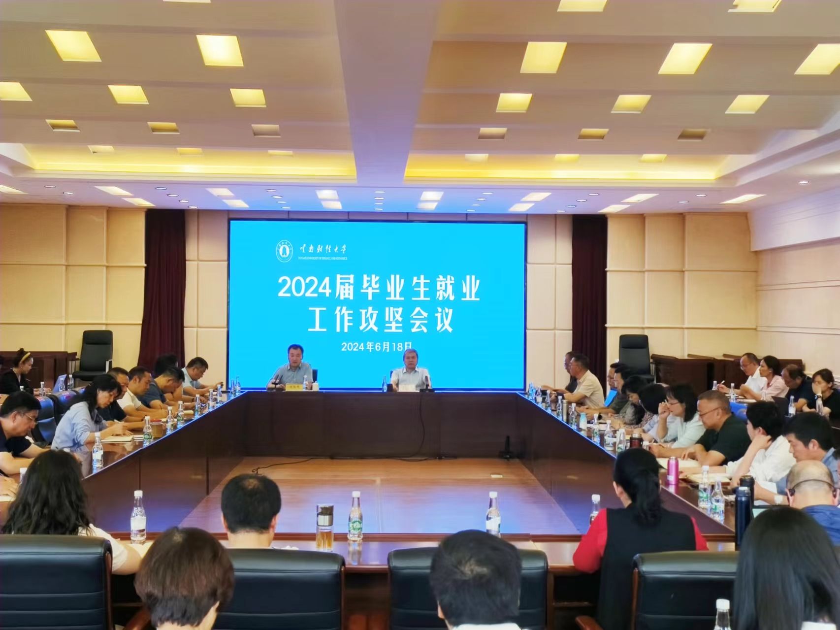 学校大学生就业创业工作领导小组成员单位负责人,各学院党委书记、院长、分管教学工作的副院长、分管学生工作的党委副书记、学生管理科科长参加会议。