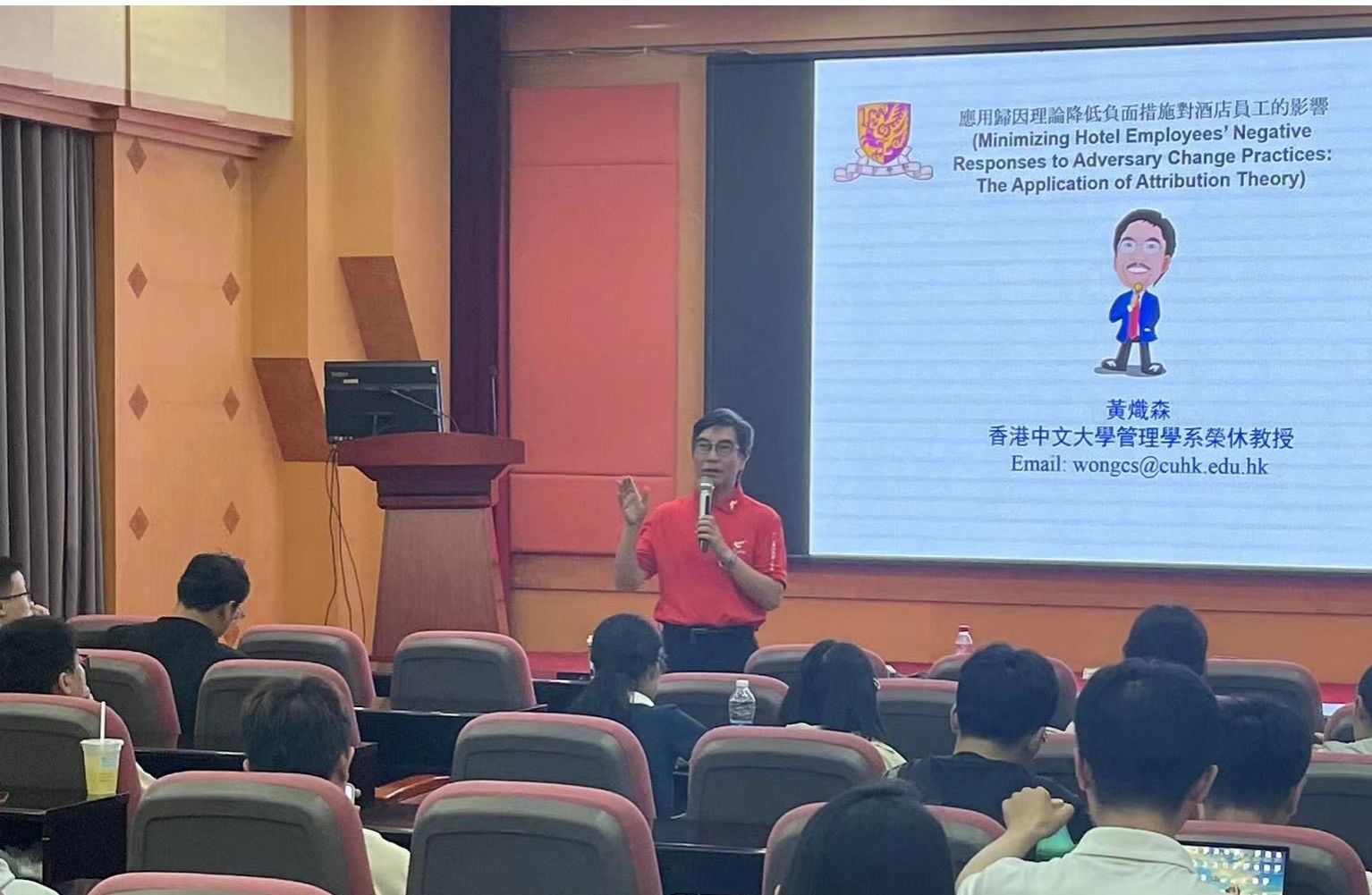 为提高全校师生科研能力,开拓研究视野,6月19日下午,“云彩”学术讲坛第二期如期开讲,香港中文大学管理学院黄炽森教授应邀到校作题为“应用归因理论降低负面措施对酒店员工的影响”的报告,全校100余名师生参加。