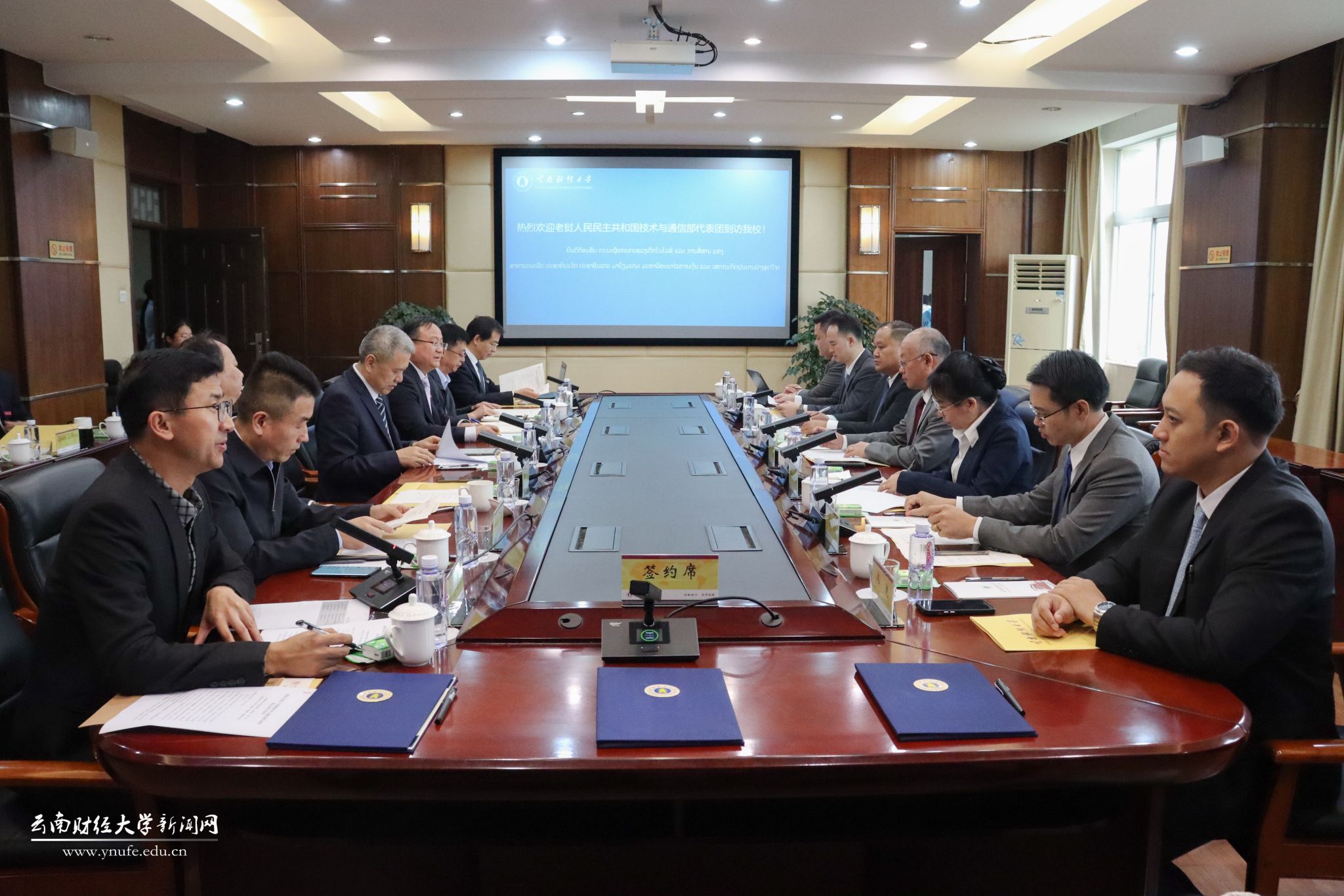 5月29日上午,老挝人民民主共和国技术与通信部副部长赛鲁撒·印西香麦率代表团到访william威廉中文官网。云南省人民政府副秘书长、省工业和信息化厅副厅长施友连,william威廉中文官网党委副书记、校长王敏与代表团举行会谈,老挝技术与通信部数字技术司司长喜利拉·赛亚补苏、学校副校长颜明代表双方签署合作备忘录。