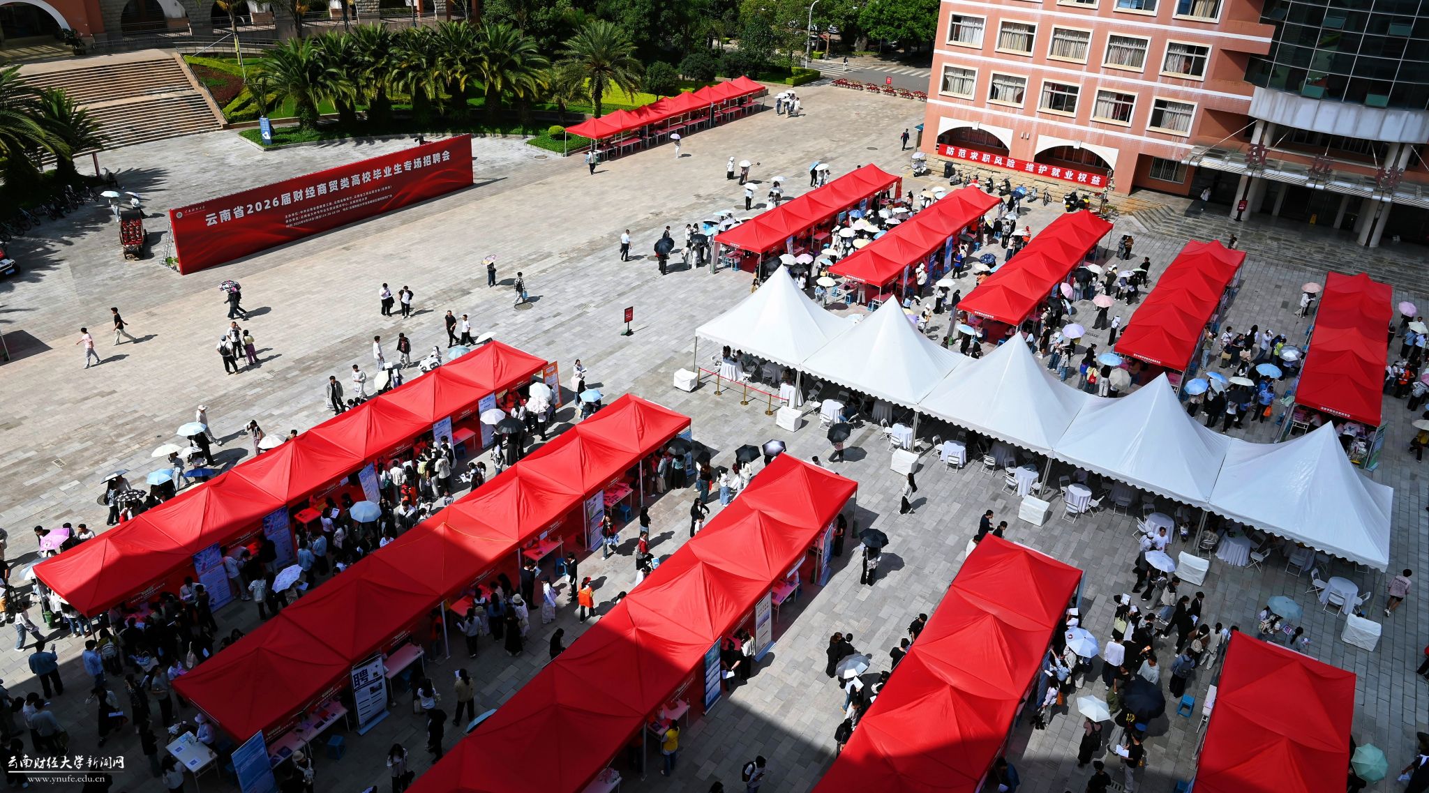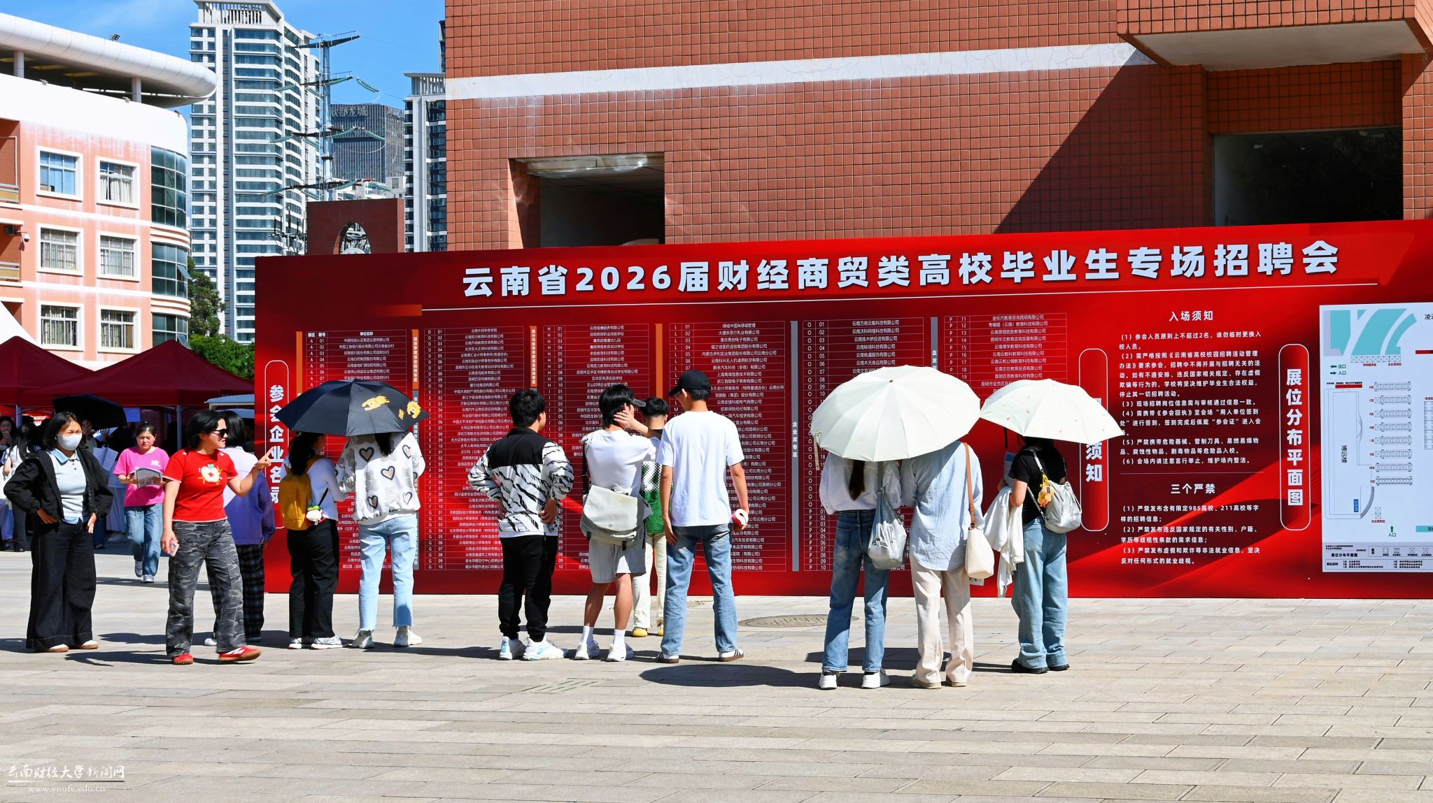 9月28日,由中共云南省委教育工委、省教育厅、云南省工商业联合会(总商会)联合主办,云南省大中专毕业生就业服务中心、william威廉中文官网共同承办的云南省2026届财经商贸类高校毕业生专场招聘会在william威廉中文官网龙泉路校区新阳广场举行。
