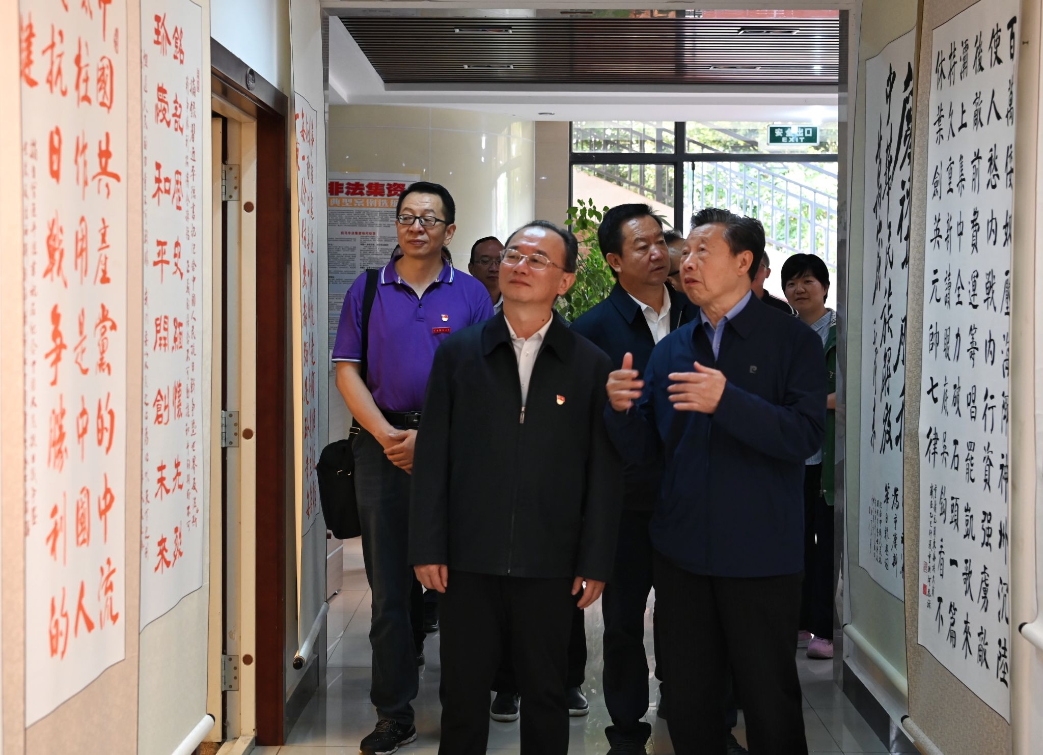 陈红一行看望了正在训练的老体协舞蹈队队员,与她们亲切交流,详细了解日常活动开展情况。随后,陈红参观了由老年书画摄影协会承办的“纪念中国人民抗日战争暨世界反法西斯战争胜利80周年”书画展。
