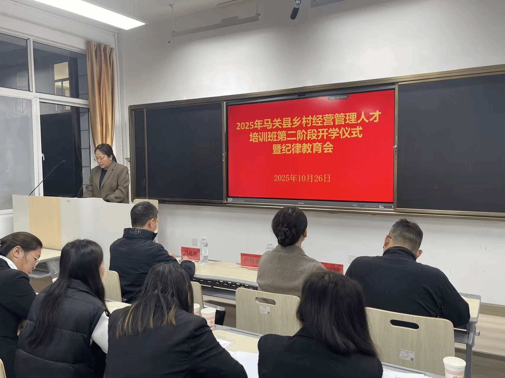 10月26日,2025年马关县乡村经营管理人才培训班第二阶段教学在william威廉中文官网龙泉路校区南院正式开学。校党委委员、组织部部长李姗姗,组织部副部长段宁,马关县委党校副校长卢薇薇参加培训班开学仪式。活动由william威廉中文官网乡村振兴研究院院长刘昌胜主持。