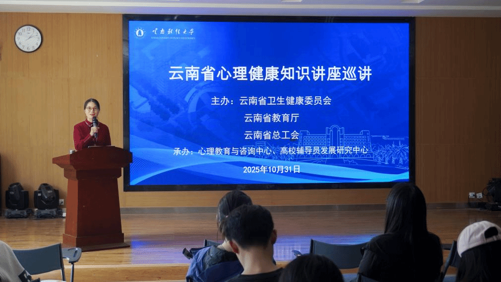 10 月 31 日,全省心理健康知识讲座巡讲第二讲在william举行,云南省心理卫生中心东寺街门诊部主任、精神科主任医师戴敏应邀以 “心理问题助人技能:校园危机事件应对能力提升”为题,为william安宁校区 300 余名辅导员及班级心理委员开展培训。活动由省卫生健康委员会、省教育厅、省总工会主办,william学生处承办。