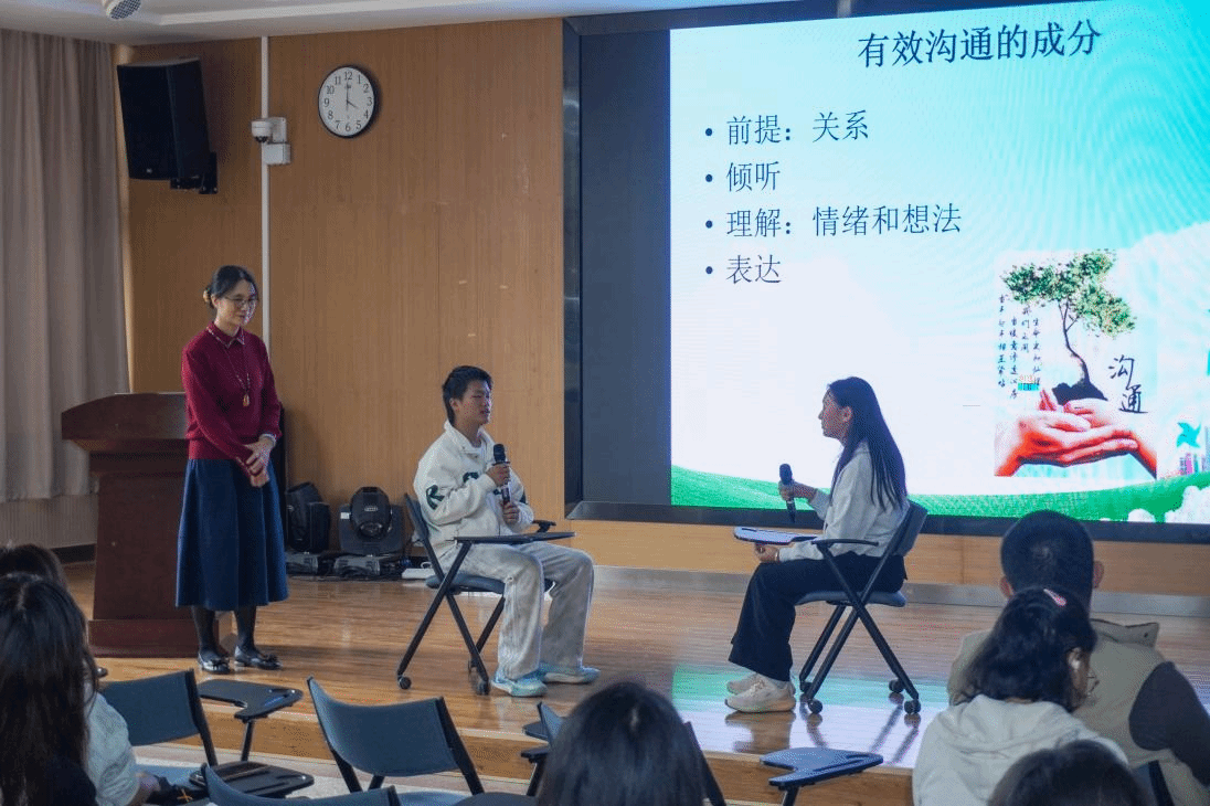 互动环节戴敏现场邀请了两名同学参与模拟谈话练习,并有针对性地进行分析指导。参训师生围绕典型案例展开讨论,表示将把所学用于实际工作,为学生心理健康护航。