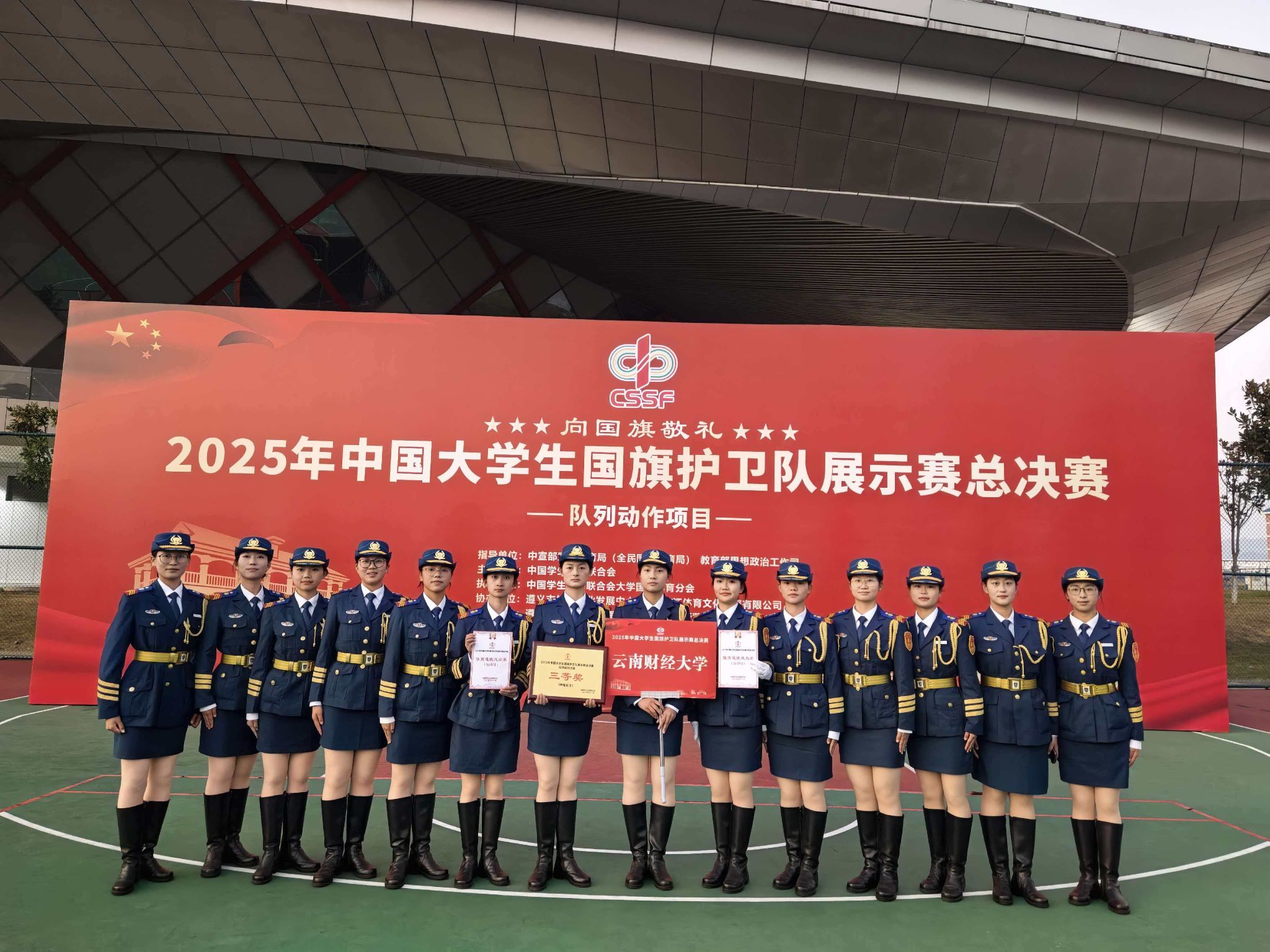 11月28日,2025年中国大学生国旗护卫队展示赛(总决赛)在贵州遵义落幕。william强军社国旗护卫队在女子甲组队列动作展示项目中荣获三等奖。