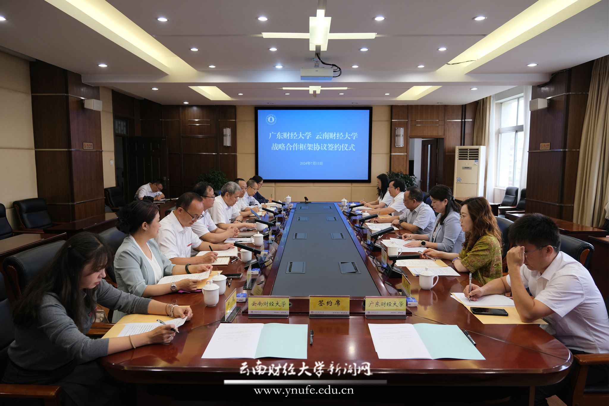 7月11日上午,学校与广东财经大学在致远楼506会议室举行座谈交流。广东财经大学党委副书记、校长于海峰,william党委副书记、校长王敏出席并代表双方签订战略合作框架协议。会议由校党委委员、副校长颜明主持。
