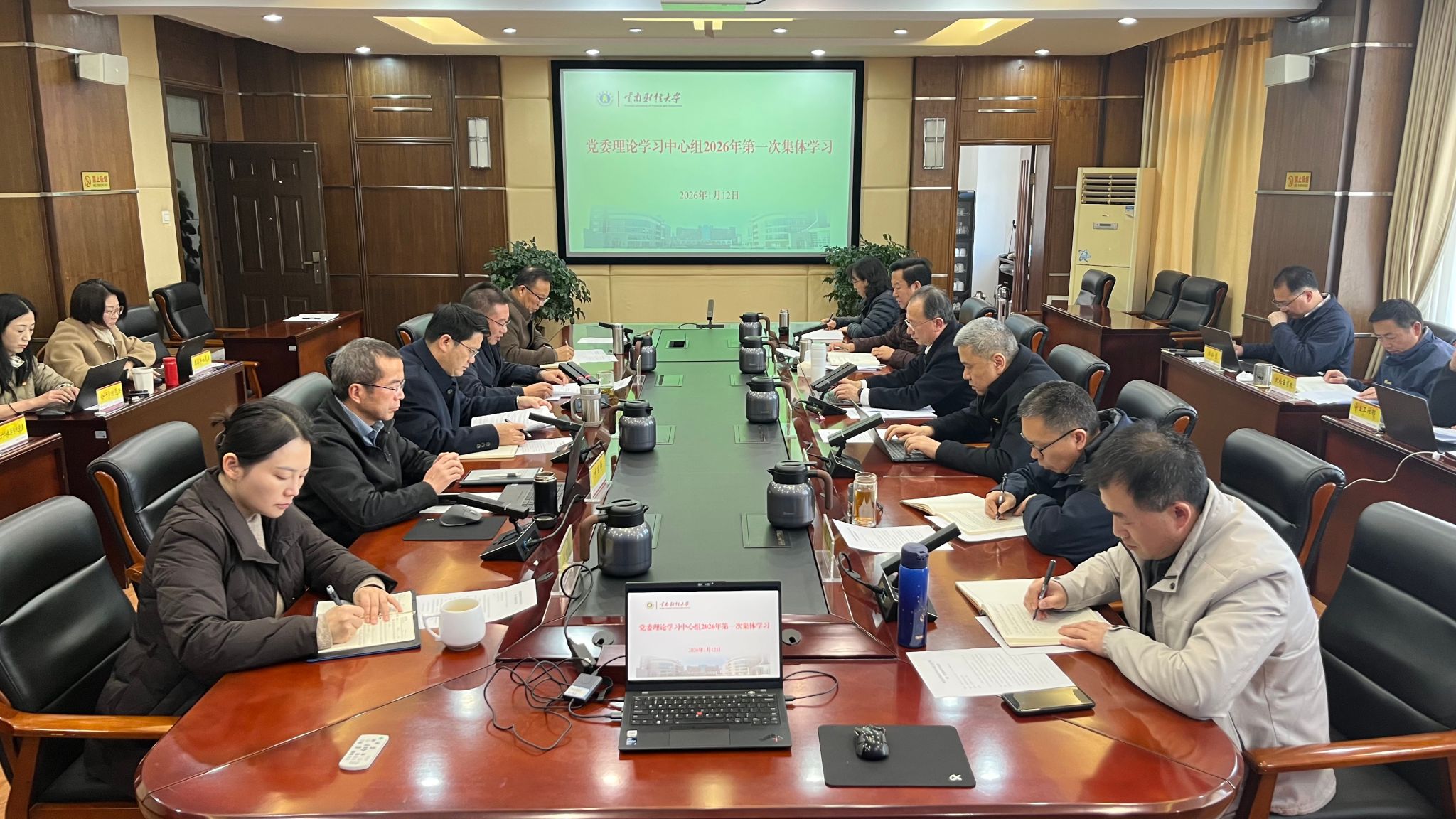 1月12日,校党委理论学习中心组召开2026年第1次集体学习暨民主生活会专题学习会。会议聚焦“为开好2025年度民主生活会打牢思想基础”这一主题,进行专题学习和交流研讨。校党委书记陈红主持学习并作总结讲话,全体校领导、党委委员参加学习。