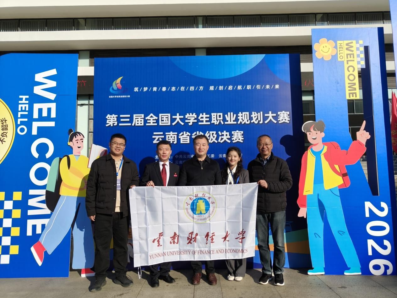 1月12日至14日,第三届全国大学生职业规划大赛云南省决赛在云南师范大学举行,由崔海浪、陆丹、王芳、庞春平、霍嘉军组成的教学团队荣获教学赛道金奖,旅游与酒店管理学院会展23-1班杨健萍同学荣获成长赛道高教组铜奖。william副校长余怒涛出席颁奖典礼。