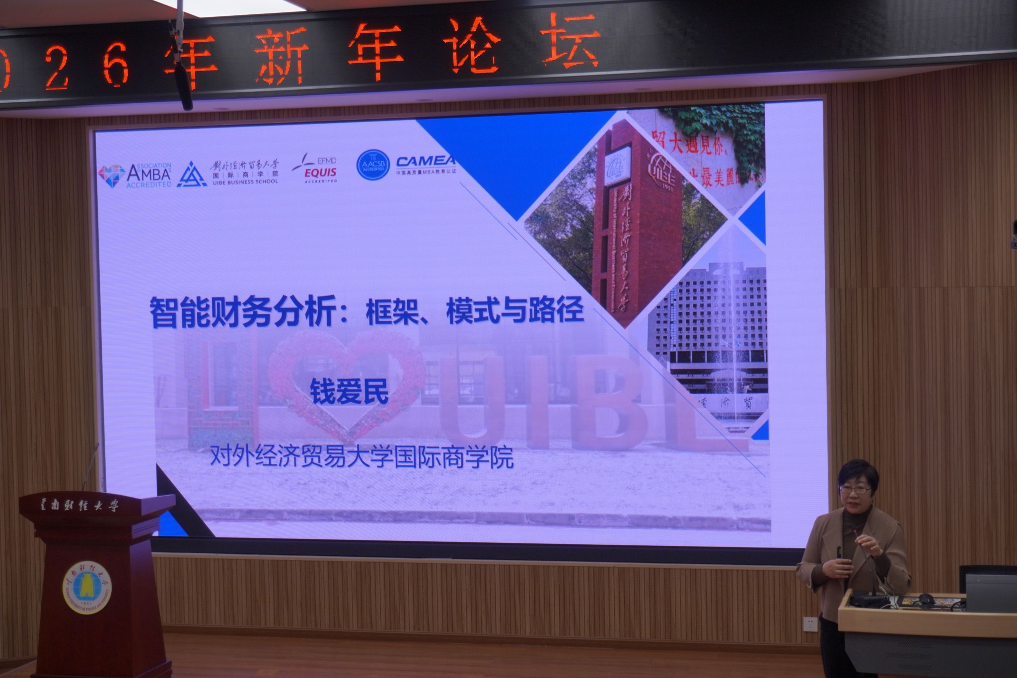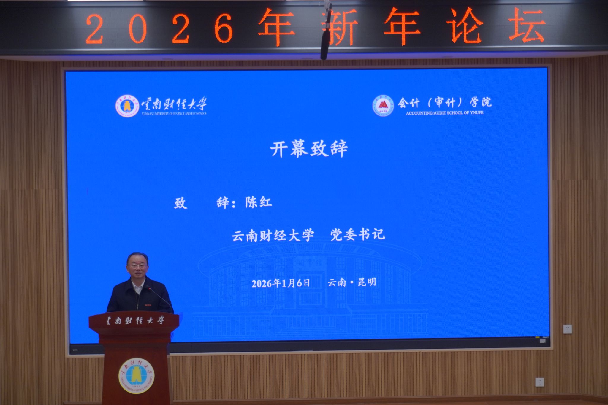 1月6日,“新时代·新征程:财会创新与区域经济发展”2026年新年论坛在william龙泉路校区举办。本次会议由学校主办,会计(审计)学院承办。校党委书记陈红教授致开幕词,副校长余怒涛教授主持开幕式。