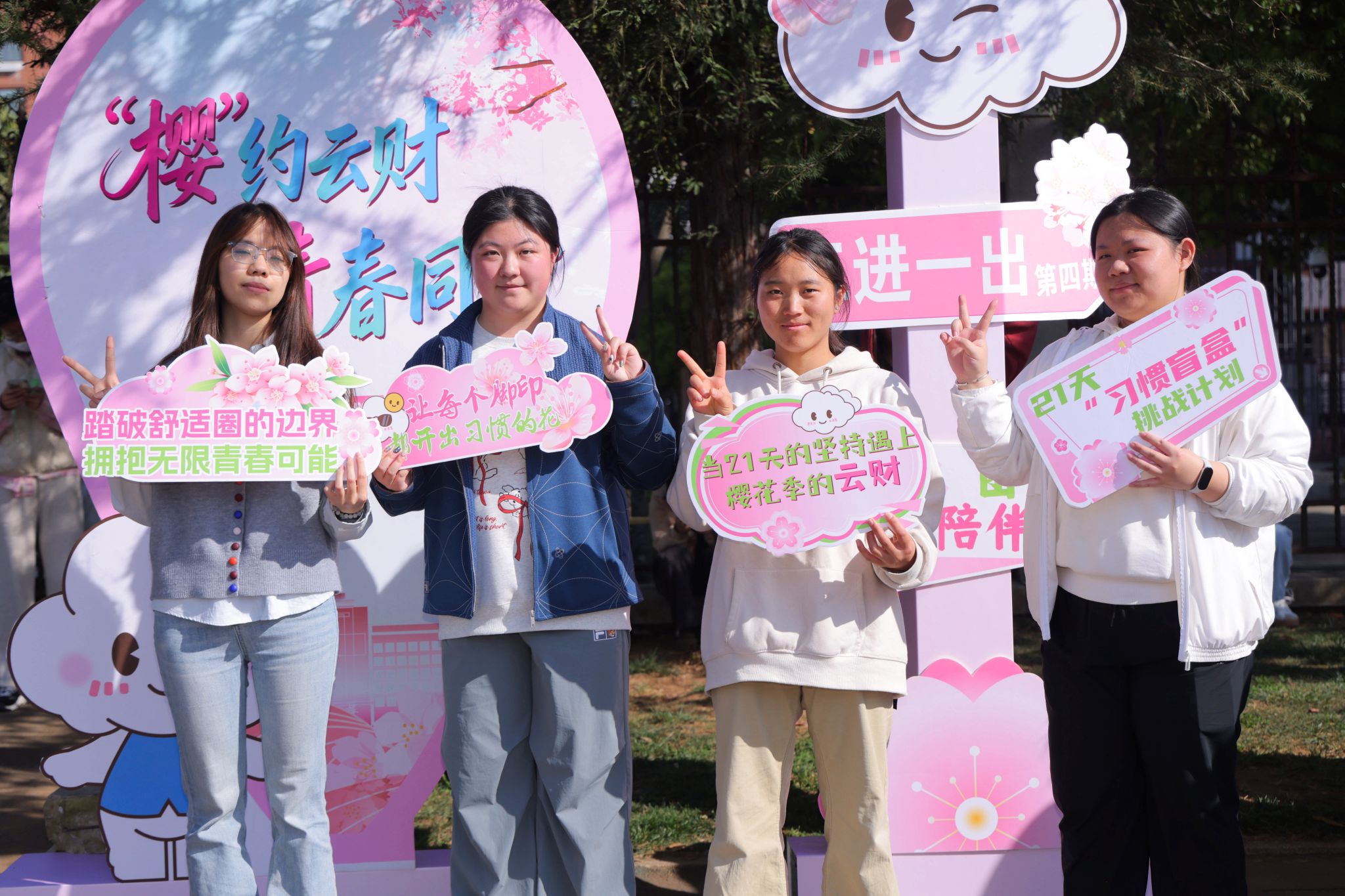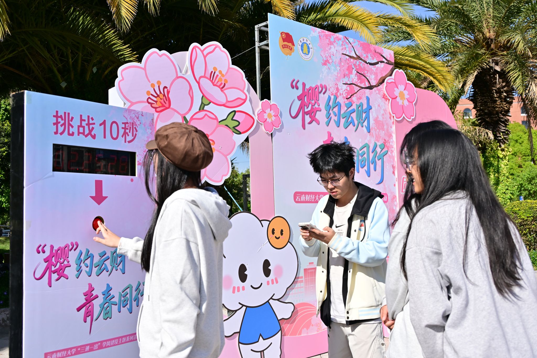 3月20日,由校团委主办的第四期“三进一出”学风建设主题系列活动在龙泉路校区正式启动。本期活动以“‘樱’约云财 青春同行”为主题,在21天习惯养成周期基础上,升级打造“线上打卡+线下互动”新模式,鼓励同学们进教室、进图书馆、进运动场、出宿舍,在沉浸式实践中积蓄成长力量,筑牢优良学风。