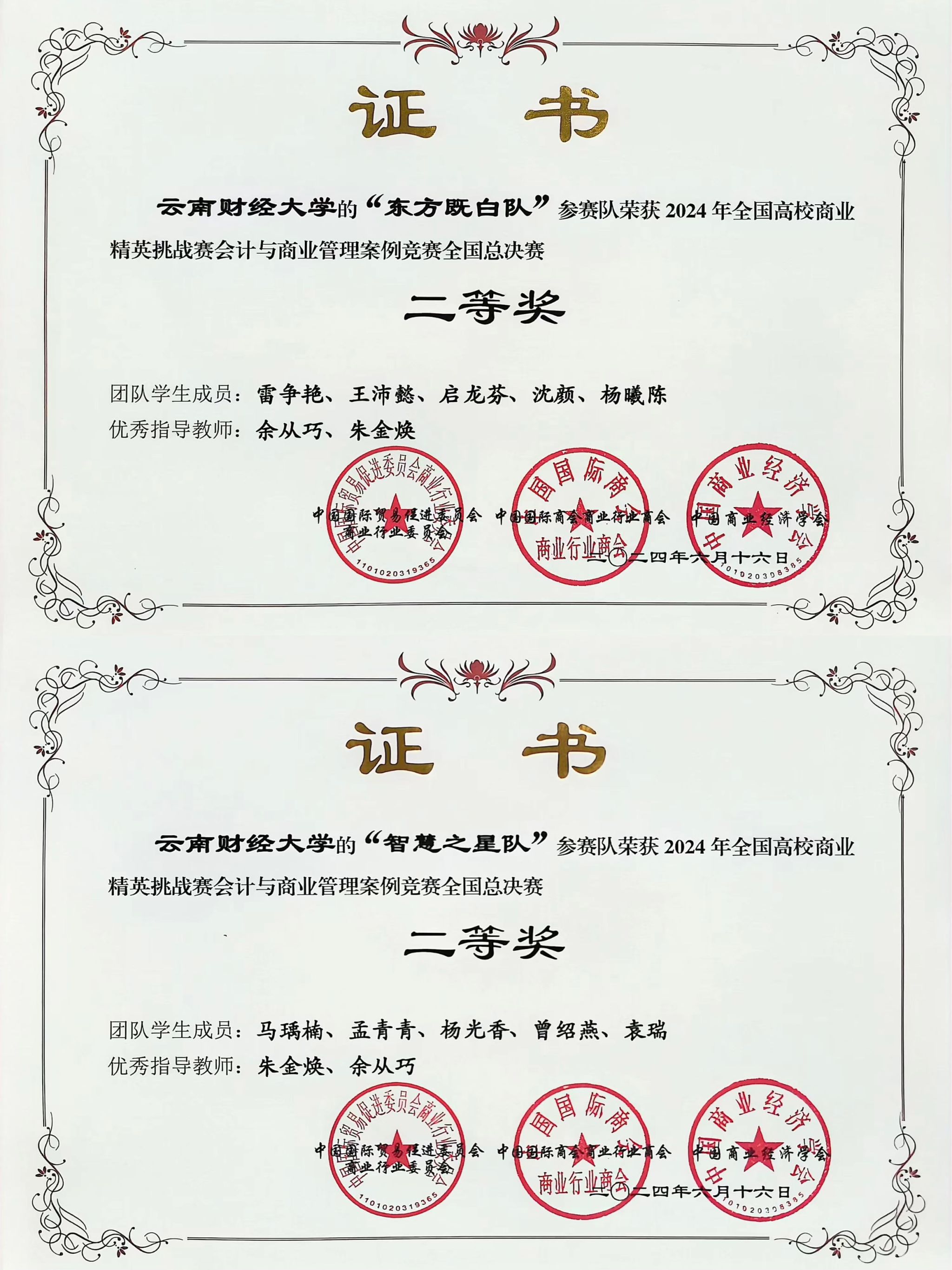 根据中国高等教育学会高校竞赛评估与管理体系研究工作组发布的《全国普通高校大学生竞赛排行榜》,该赛事于2023年纳入全国普通高校大学生竞赛排行榜目录,是教育部认可的A类赛事,备受全国高校学科竞赛排行榜的关注和认可。本届竞赛云南省有十余所高校派出代表队参加,参赛师生达400余人。中华职业学院本科生马瑀楠、孟青青、杨光香、曾绍燕、袁瑞组成的“智慧之星队”,以及雷争艳、王沛懿、启龙芬、沈颜、杨曦陈组成的“东方既白队”在朱金焕、余从巧老师的精心指导下,从项目构思、商业计划书撰写、视频录制到陈述答辩分工明确,配合默契,深入研究案例,不断完善方案,以清晰的思路、精彩的视频和自信的表达,充分展现了扎实的专业素养与团队协作能力。