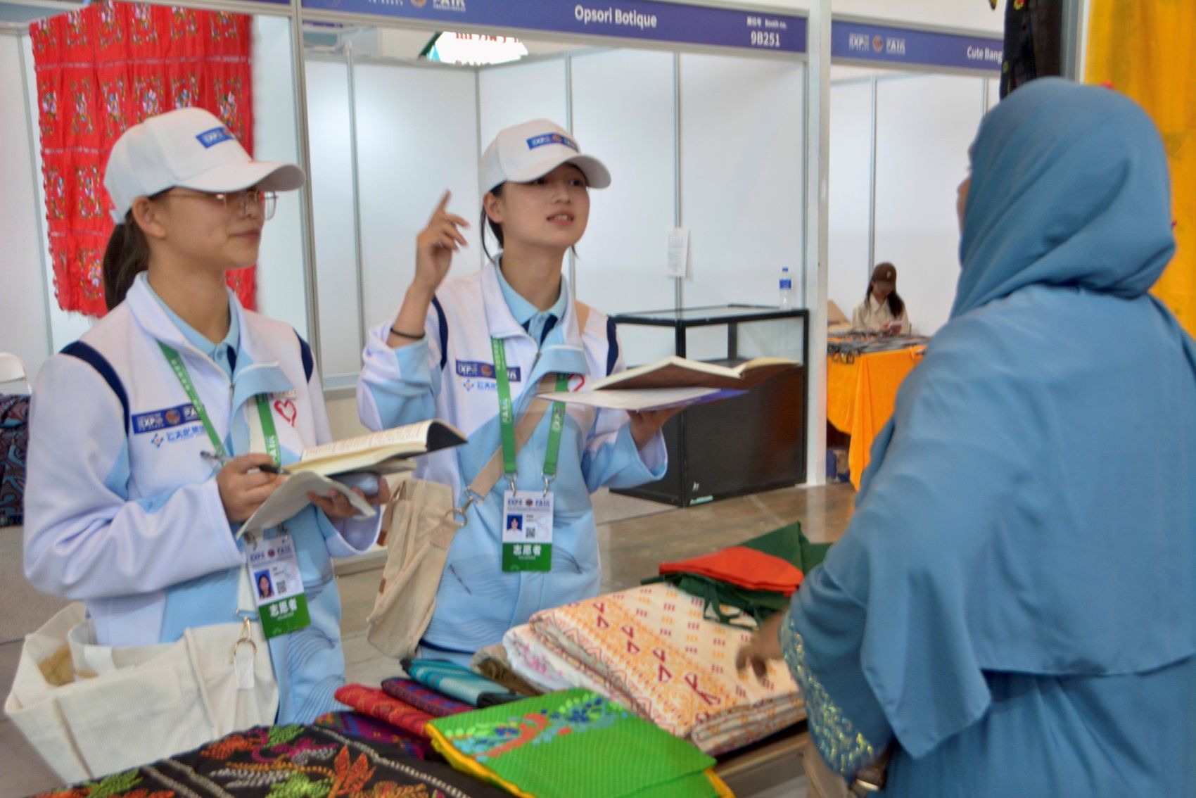 南博会期间,william志愿者具体负责9个展馆的销售额统计、语言服务以及各馆的满意度调查。同学们坚守岗位,带着满腔的热忱投入到每天的工作中——有的同学穿梭在各个展位,明确多个国家商家数量,记录具体销售数据;有的同学为来自南亚、东南亚以及境外其他国家的展商们提供文字和口语的翻译支持,帮助展商们与参展嘉宾及游客高效交流,保证交易的顺利进行;有的同学则在各馆开展问卷调查,以获取最及时的反馈。