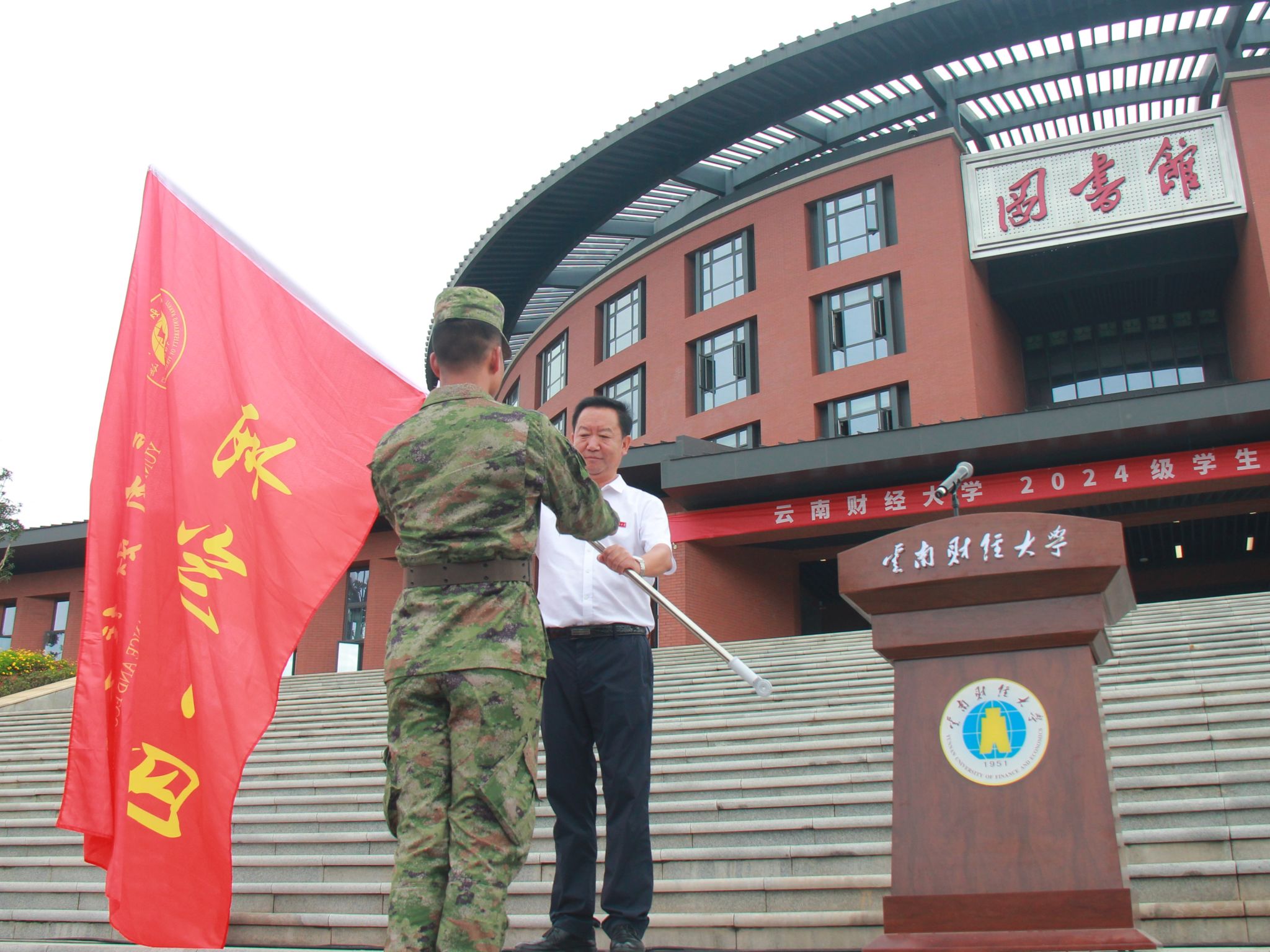施仲军向军训团授旗并作动员讲话。他向负责承训的中国人民解放军31632部队表示欢迎和感谢,向本次参训的8000余名同学表达了良好祝愿。他表示,大学生军训是党中央、国务院、中央军委的战略决策,是实现立德树人根本任务和强军目标根本要求的基础工程,也是学校全面贯彻党的教育方针,开展国防教育,强化国防意识,培养国防建设高素质后备人才的重要举措。学校高度重视国防教育及军训工作,通过学生军训、应征入伍、国防后备营建设、军事理论教育等工作,持续激发大学生爱国爱军热情,近年来为部队输送了多批优秀高素质兵源。他希望全体参训同学敢于吃苦、刻苦训练、严守纪律、团结协作、牢记安全,在军训实践中感悟初心使命,在艰苦训练中锤炼吃苦精神,在服从命令中体会军人职责,在互帮互助中感受团结友谊,在奋力拼搏中蜕变成长;希望全体承训教官要高标准、严要求,把人民军队的光荣传统和优良作风带给同学们,为他们的学习生活和今后工作打下坚实基础;各学院带队教师和军训团工作人员要强化意识,坚守岗位,配合教官做好学生日常管理、思想政治教育、服务保障等工作,确保军训工作圆满完成。