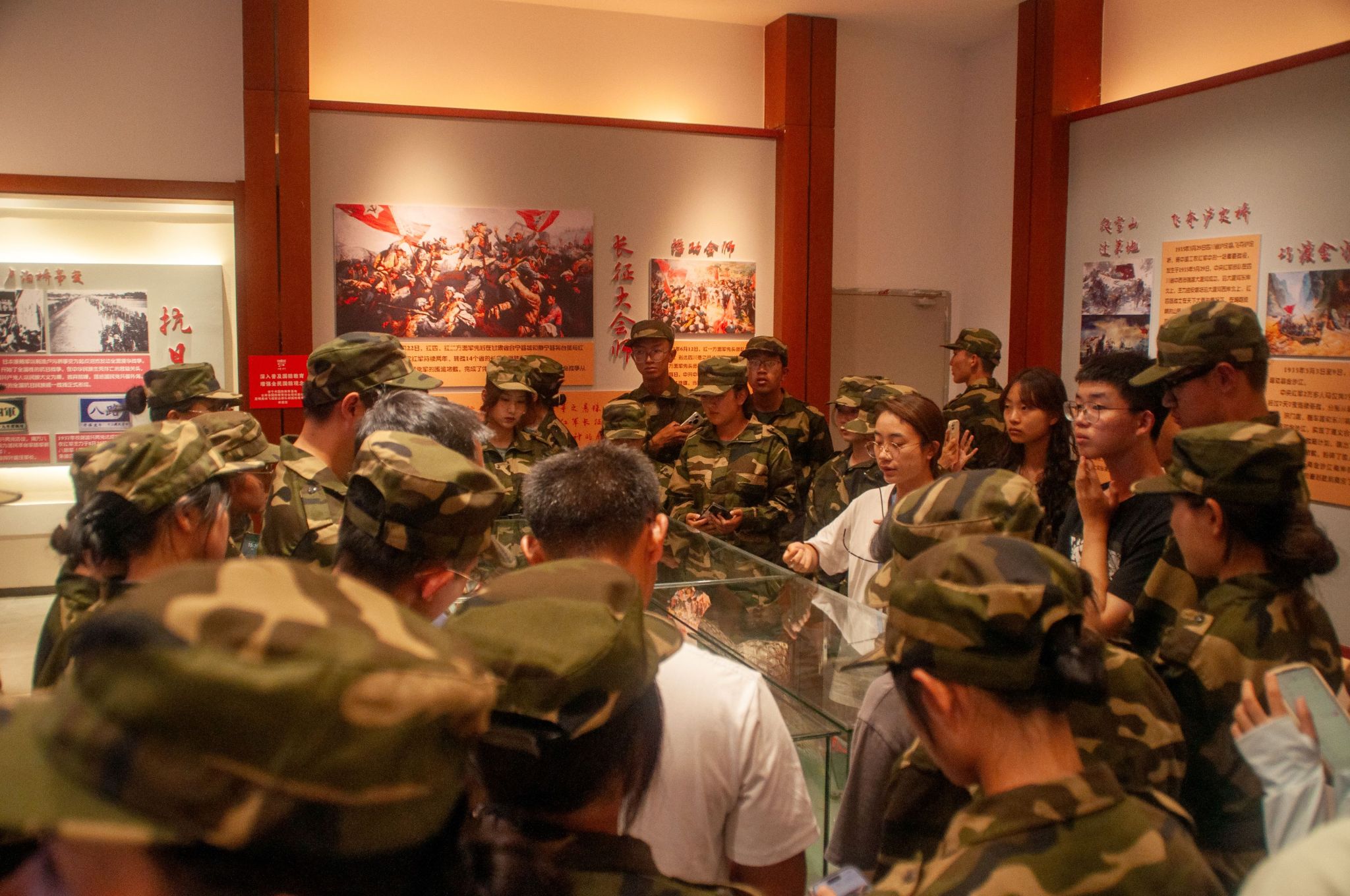 打靶结束后,同学们在讲解员的带领下参观了国防教育展览馆,重温了中国共产党历史、人民军队奋斗史,了解了各种大国重器模型。