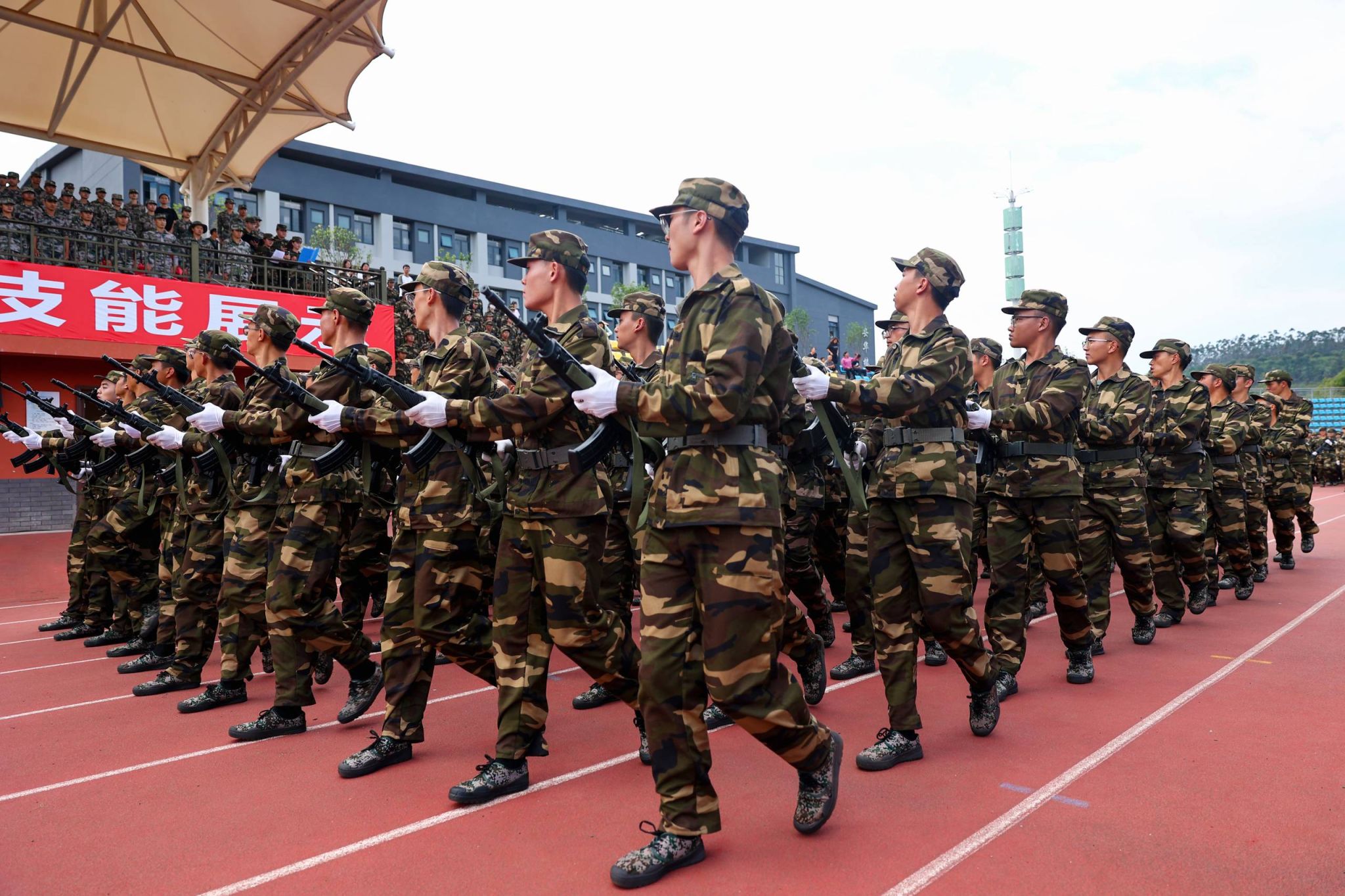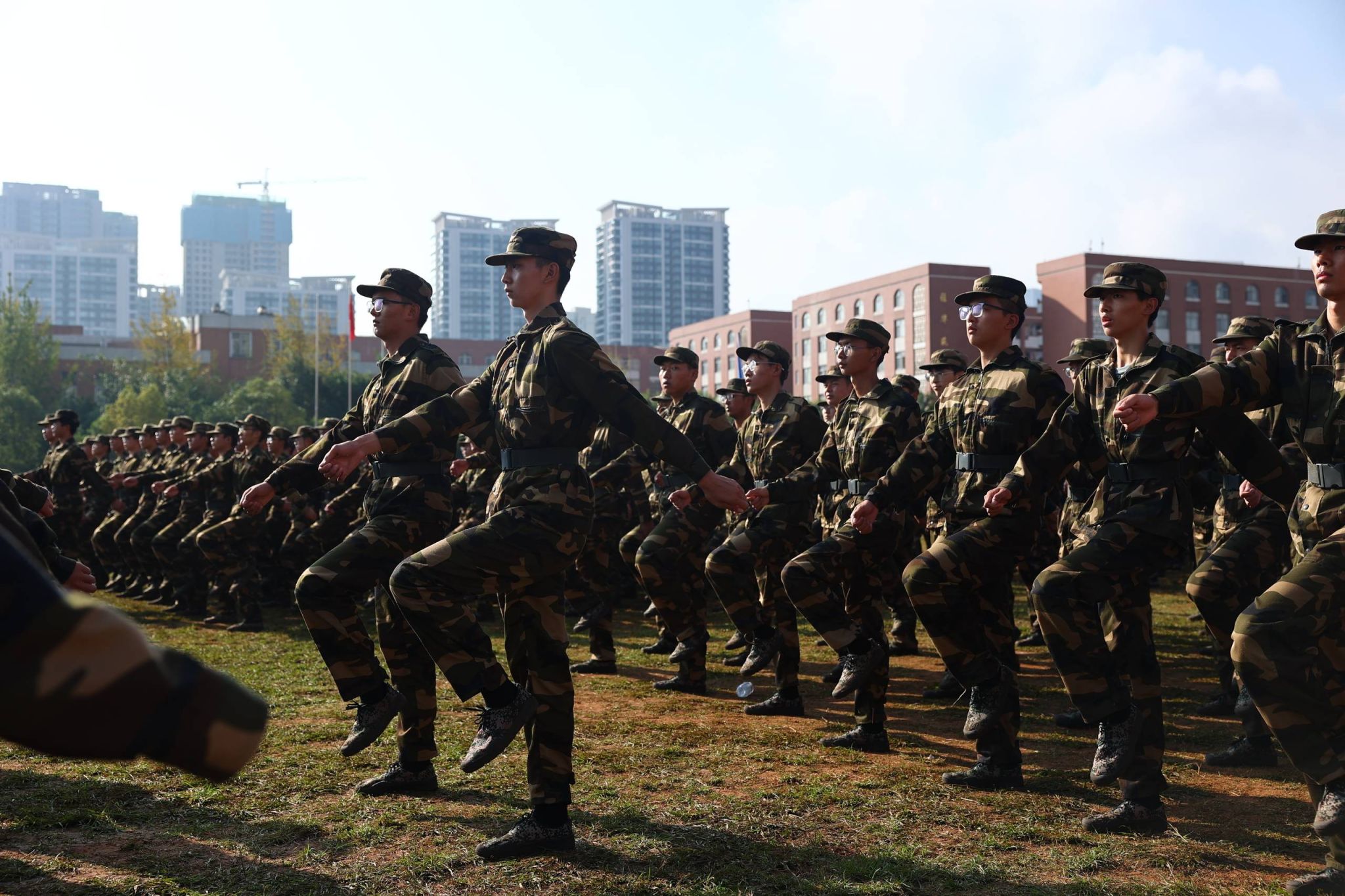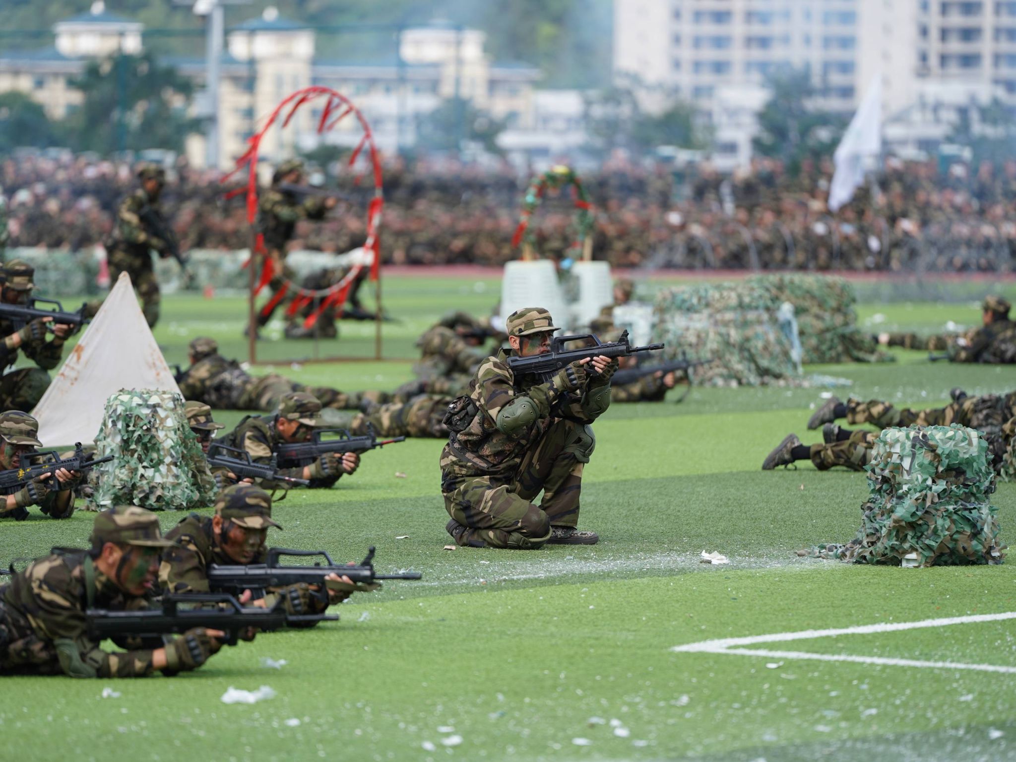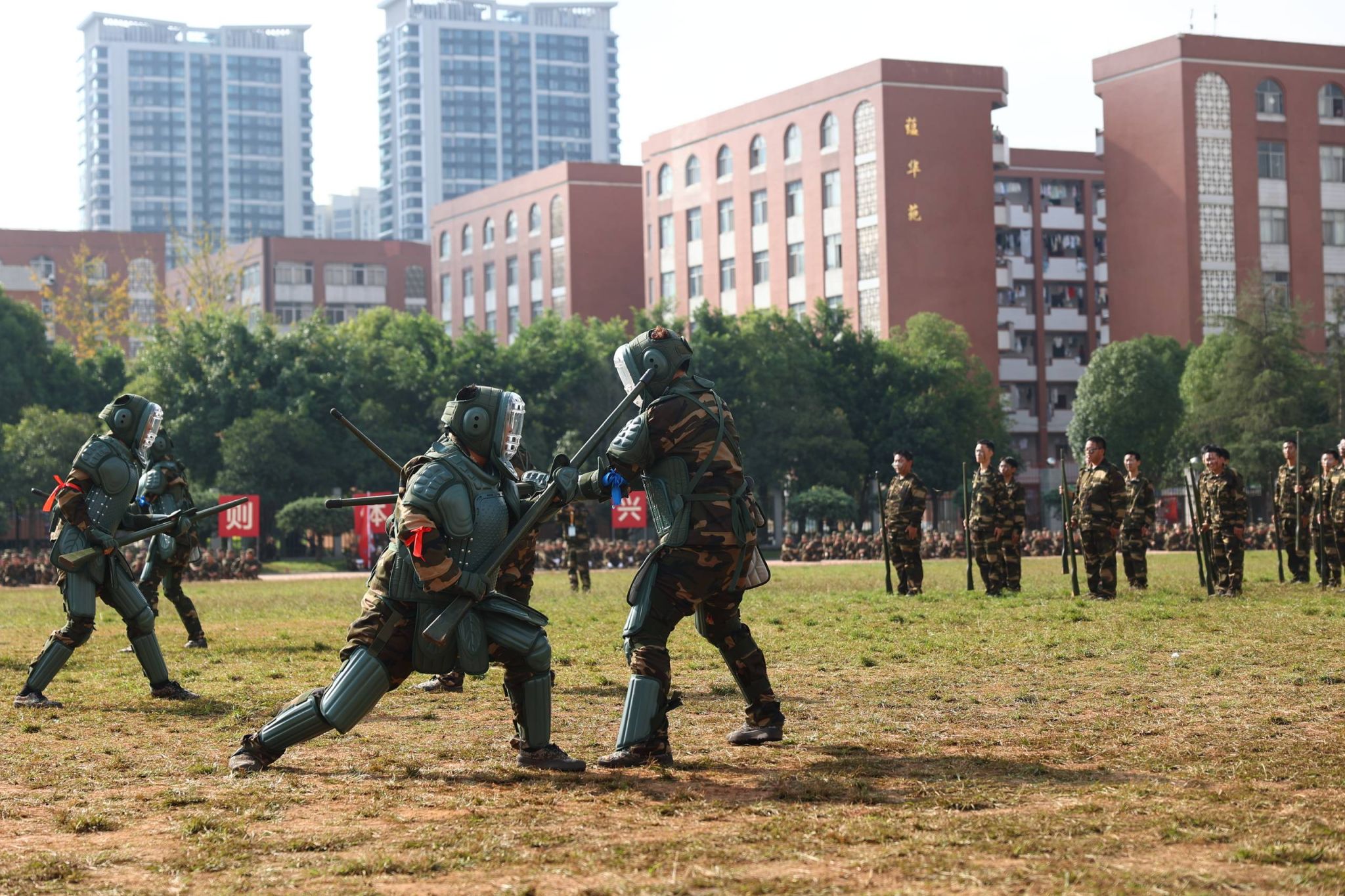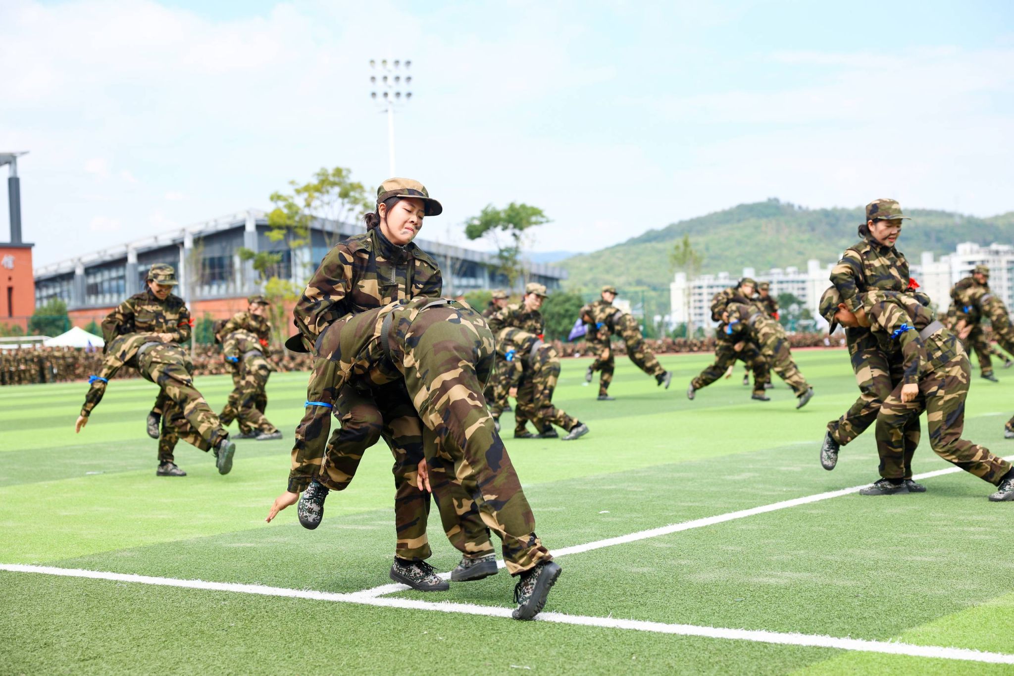 2024级军训学生军事技能展示在激昂雄壮的《中国人民解放军军歌》中落下帷幕。