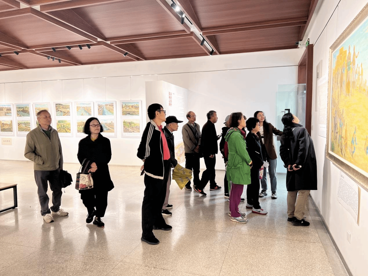 百余名离退休教职工在美术馆工作人员的引导下,细细品味每一幅作品。大家沉浸在艺术的海洋中,时而驻足沉思,时而低声交流,被作品中的家国情怀和昆明元素深深吸引。洪云生老师在观展后感慨地说:“又是一年重阳,岁月不饶人,但这些作品让我仿佛回到了童年时光,找回了那份熟悉的感觉。同时,我也感受到了昆明这些年来的巨大变化和发展,更加激发了我对祖国的热爱和自豪。”