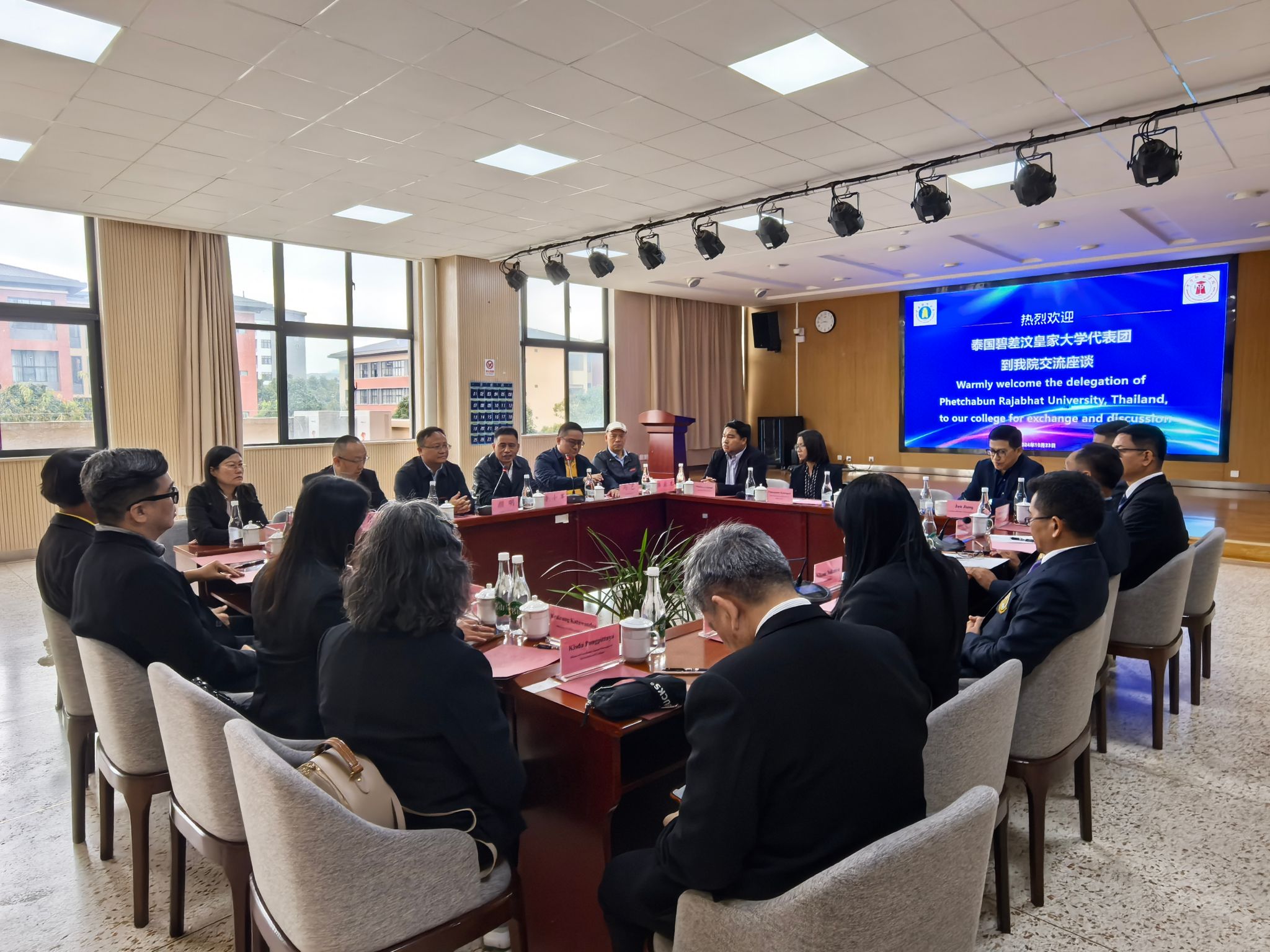 泰国碧差汶皇家大学校长办公室、人文与社会科学学院、科技学院、管理科学学院、农业技术与工业技术学院、教育学院、护理学院、国际学院、信息技术与服务办公室等有关负责人,泰国曼谷商学院执行院长马艺,中华职业学院副院长宁东玲、陈应龙参加交流座谈。