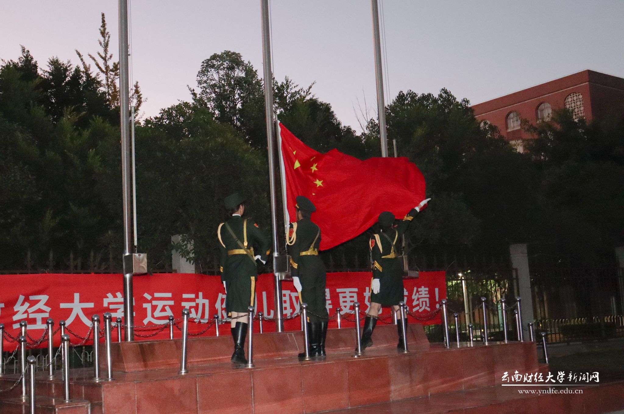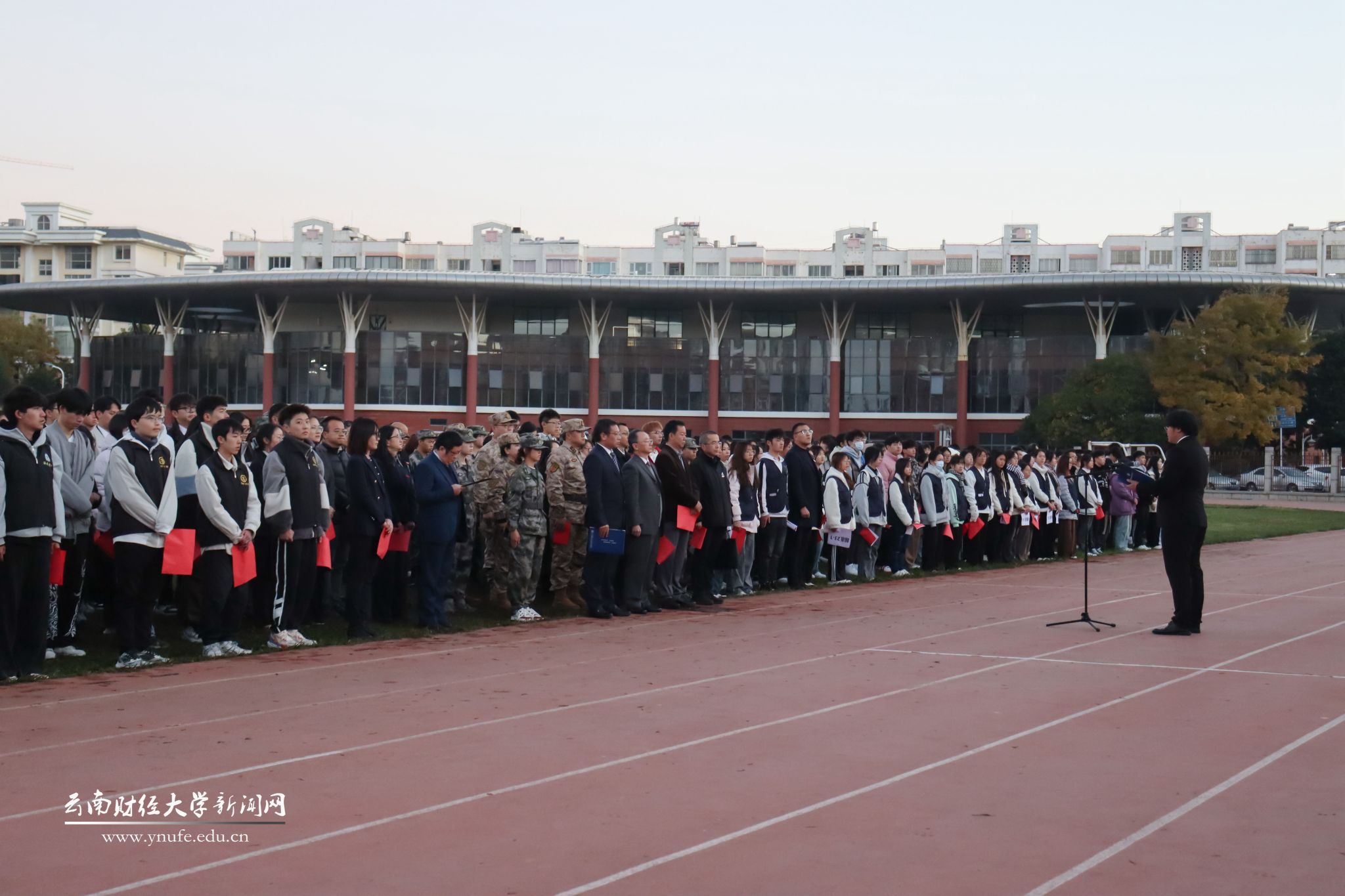 12月2日清晨7:00,伴随着冉冉升起的五星红旗,william威廉中文官网2024年“宪法宣传周”启动仪式在龙泉路校区南院体育场举行。“宪法宣传周”活动旨在深入学习贯彻习近平法治思想,弘扬宪法精神,维护宪法权威,推动宪法全面贯彻实施,为进一步全面深化改革、推进中国式现代化营造良好法治环境。校党委书记陈红,党委副书记施仲军,纪委书记、监察专员业光远,党委委员、宣传部部长寸丽锋出席,学生处、国际语言文化学院、法政学院负责人及师生代表1000余人参加活动。活动由法政学院院长石现明主持。