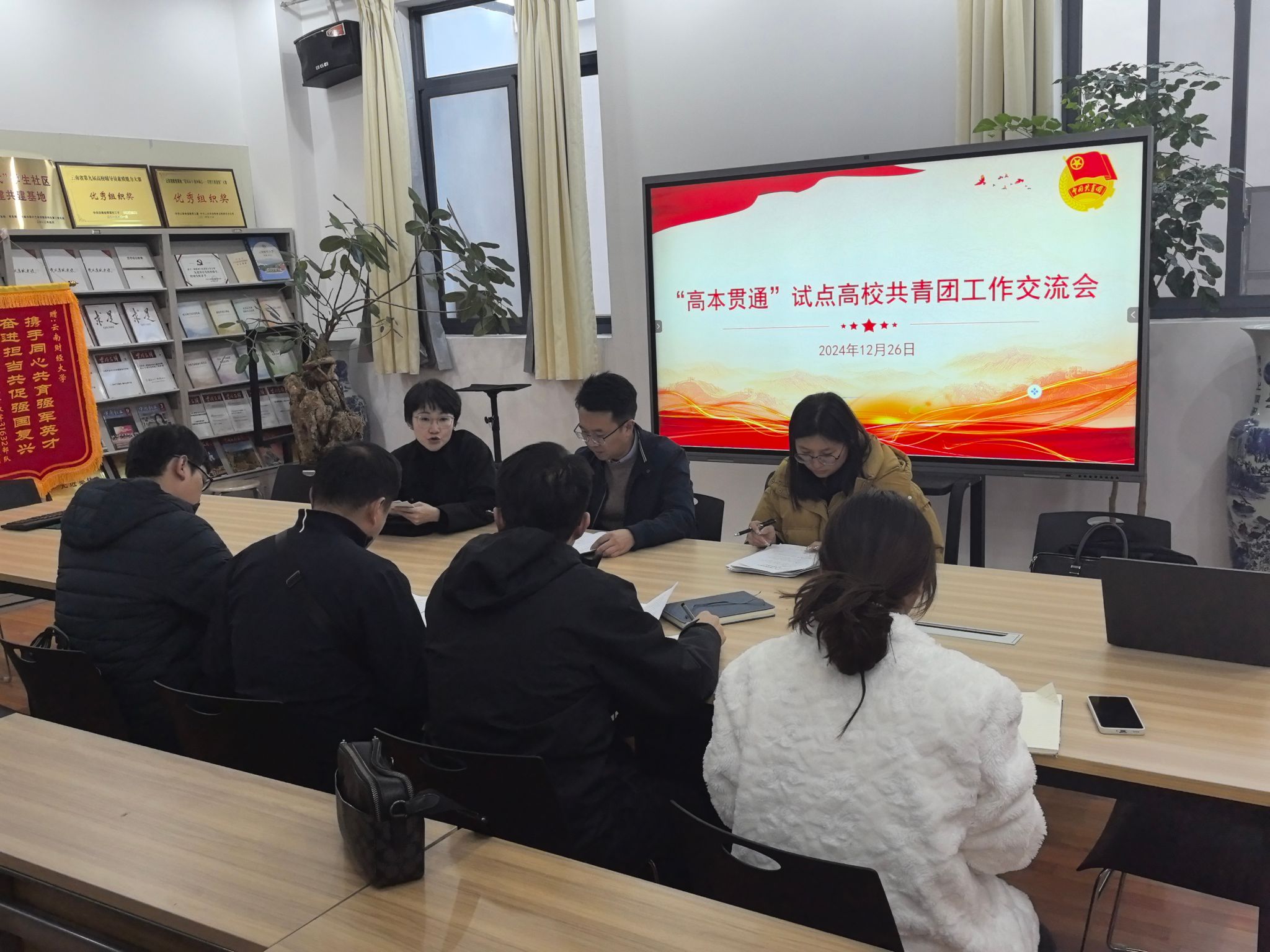 为进一步探索高层次技术技能人才培养新途径、新模式,学校与云南财经职业学院、昆明工业职业技术学院签署了“3+2”高本贯通培养试点项目。为增进三校在学生教育管理服务、团学活动等方面的沟通交流、协同合作,帮助“未来校友”了解财大、熟悉财大、认同财大,12月26日,3所学校的学工部、团委所有教工党员在龙泉路校区南院联合开展“党建促学风 共学党史校史”主题党日活动。