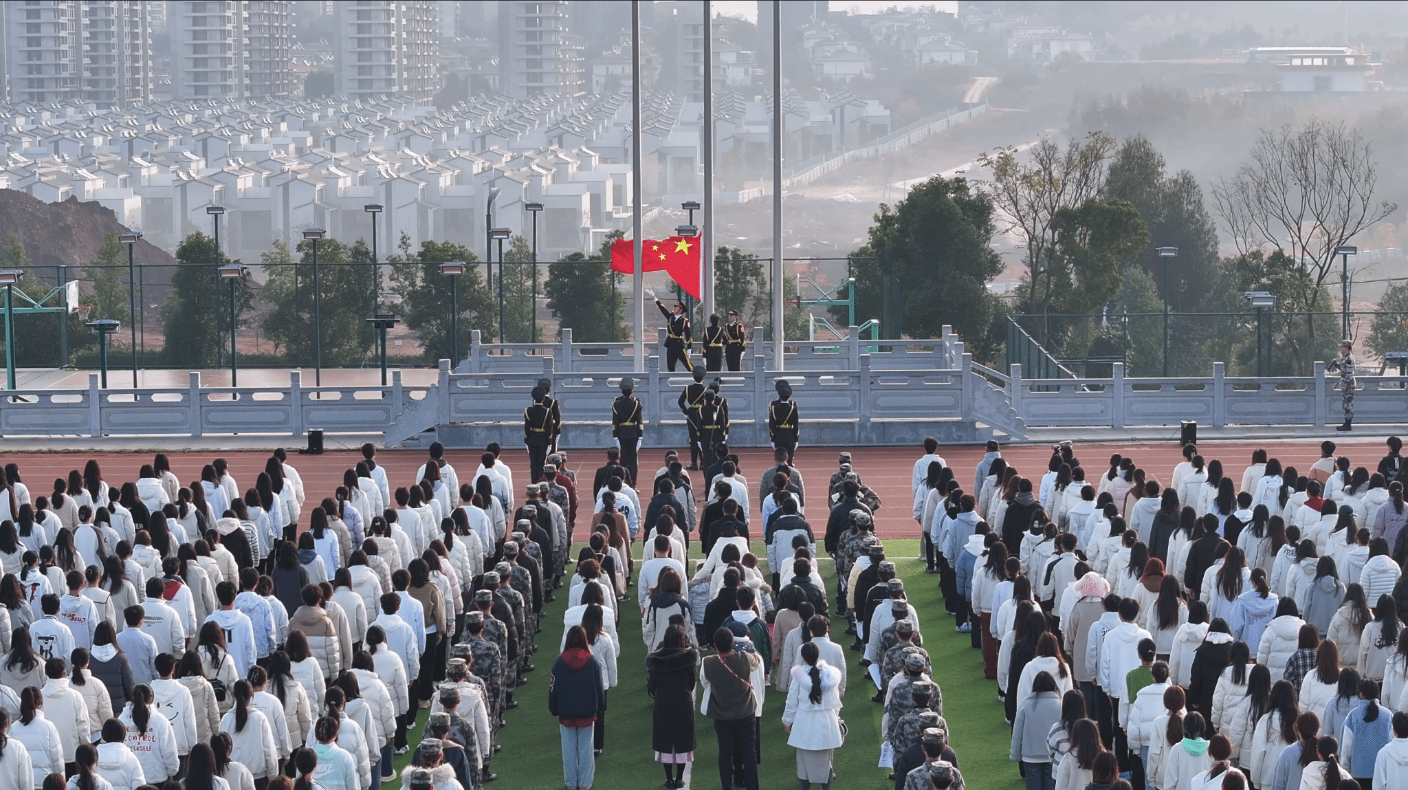 2025年1月1日上午9:00,迎着新年的朝阳,学校在安宁校区田径场举行元旦升国旗仪式。