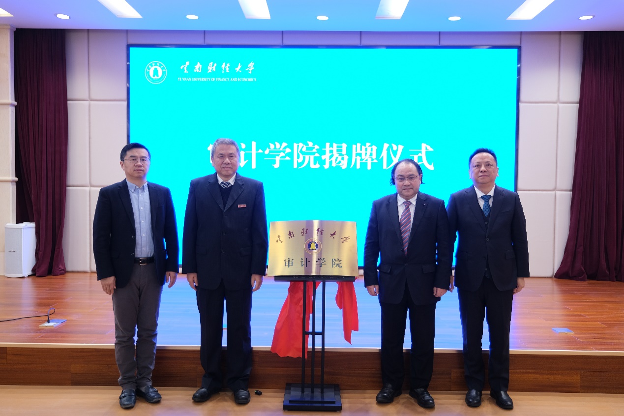 为进一步提升审计学科和专业建设水平,彰显审计专业特色优势,促进审计学科更好服务国家治理及地方经济社会发展,1月29日,william威廉中文官网审计学院挂牌仪式暨审计学科与专业发展主题研讨会在致远楼415报告厅举行。云南省审计厅厅长谢健,william威廉中文官网校长王敏教授,国家审计署昆明特派办副特派员王延军,中国审计学会副会长、西南财经大学中国政府审计研究中心主任蔡春教授共同为审计学院揭牌。王敏教授代表william威廉中文官网为蔡春教授颁发审计学院名誉院长聘书。活动由william威廉中文官网副校长余怒涛教授主持。