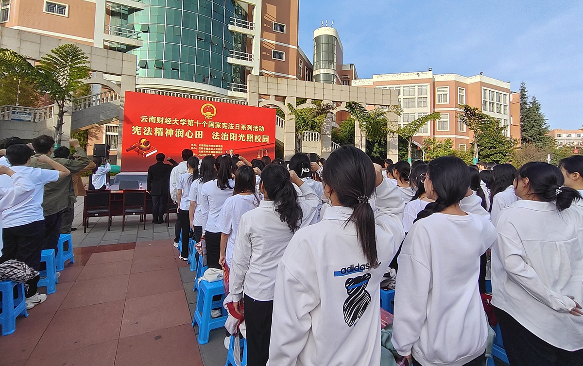 12月4日下午,由学校主办、法政学院承办的“宪法精神润心田,法治阳光照校园”第十个国家宪法日系列活动在南院博源广场举行,校党委副书记、校长王敏出席并作为领誓人带领全体参加活动的师生进行宪法宣誓。