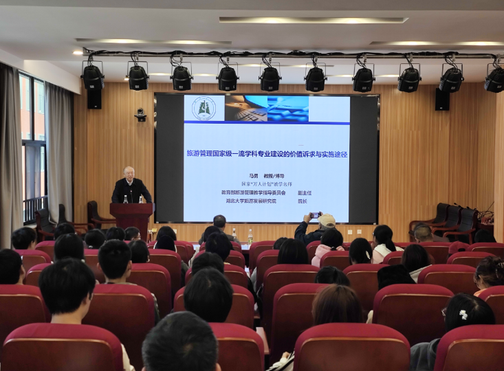 授牌仪式后,马勇以旅游管理国家一流专业建设为主题为师生作专题讲座。
