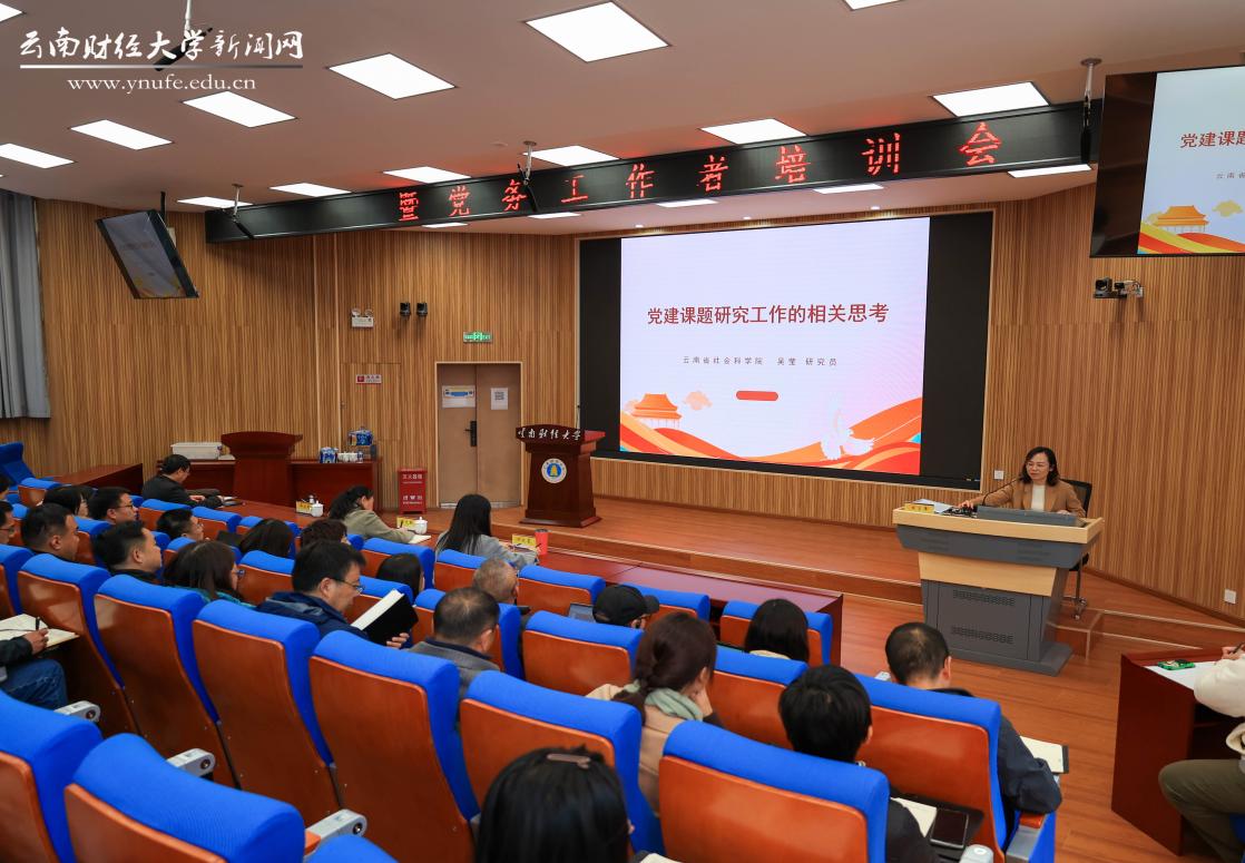 吴莹以《党建课题研究工作的相关思考》为题,从新时代加强党建课题研究意义重大、党建课题研究涉及的相关问题、如何做好党建课题研究三个方面作专题辅导。她表示,要深入学习贯彻习近平总书记关于党的建设的重要思想,深刻认识党建研究的独特作用,深入了解党建研究的成果形式,规范开展党建课题研究,扎实开展党建研究工作,不断开创党建研究工作新局面。她指出,做好高校党建课题研究工作,要扣准人才培养使命,突出“五大特性”,切实以党建固立场、明方向、聚力量、促发展。