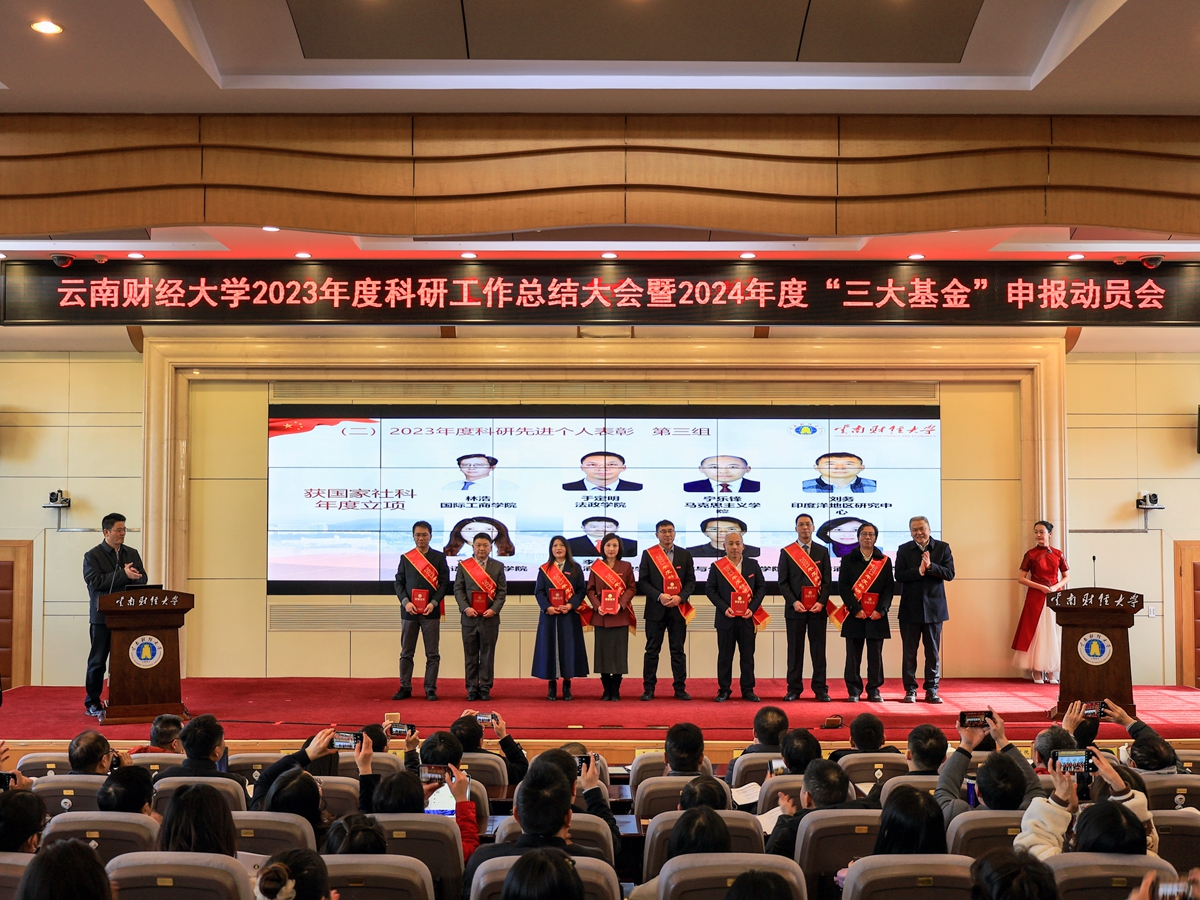 1月5日,学校召开2023年度科研工作总结大会暨2024年度“三大基金”申报动员会,党委副书记、校长王敏,党委委员、副校长余怒涛出席会议并为27名“2023年科研先进个人”颁奖。党委委员、副校长李正彪主持会议。