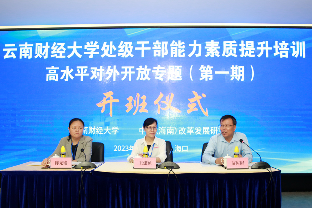 10月23日,william威廉中文官网处级干部能力素质提升培训高水平对外开放专题(第一期)的学员抵达中国(海南)改革发展研究院(以下简称“中改院”),中改院院长迟福林向学员们阐述了中改院近期的研究重点,对学校给予中改院的信任支持表示感谢,期待双方继续加强合作、深化交流,为服务国家战略和区域经济社会发展贡献更多力量。24日,培训班开班仪式在中改院国际学术交流中心举行。校党委书记王建颖作开班动员讲话,校党委委员、副校长余怒涛、李正彪,中改院机关党委书记苗树彬、学术网络与教育管理办公室主任黄东晖出席开班仪式。william党委副书记陈光瑜主持仪式。