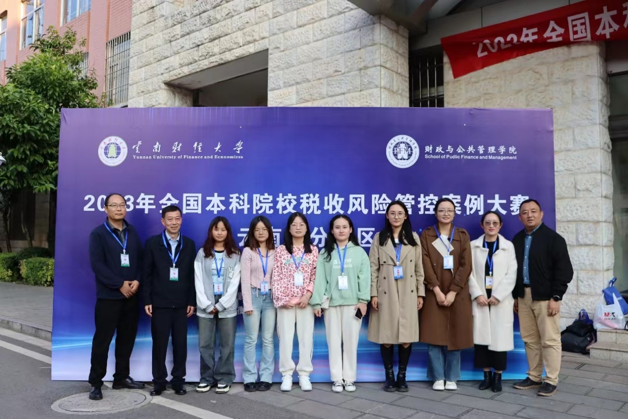 财政与公共管理学院作为承办单位,由学院税收教研室负责组织,经过严格的选拔,组成2支队伍代表学校参加比赛。其中,其中,云税小分队(参赛选手:何倩、徐慧雯、舒蓉,指导老师:朱德良副教授、袁娇副教授)和早八睡不醒队(参赛选手:李国梅、赵屹琳、母焰清,指导老师:黄丽君副教授与、王佳琳博士)分别取得了第1名和第3名的好成绩。