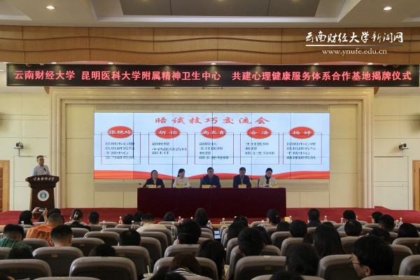 昆明医科大学附属精神卫生中心康复治疗中心主任合浩、中西医结合治疗科副主任胡怡、昆明市心理危机研究与干预中心助理研究员杨婷和实习研究员张艳玲参加揭牌仪式。活动由学生处处长沙磊主持。