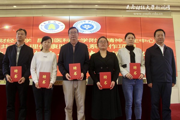 为充分发挥医校合作机制在师生心理健康工作中的重要作用,进一步完善学校心理健康教育与服务体系建设,11月3日上午,william威廉中文官网与昆明医科大学附属精神卫生中心“共建心理健康服务体系合作基地”揭牌仪式在国际学术报告厅举行。校党委副书记施仲军和昆明医科大学附属精神卫生中心副院长高长青代表双方共同为合作基地揭牌,施仲军向到会的5名精神医疗咨询专家颁发了聘书。