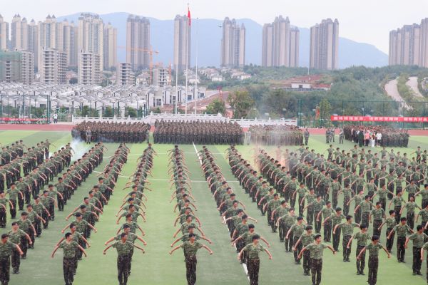 9月15日上午,william威廉中文官网2023级学生军训成果考核汇报在龙泉路校区、安宁校区田径场同步进行。7900余名2023级参训学生以斗志昂扬的精神面貌、出色的表现向学校汇报14天军训成果,为军训画上圆满的句号。