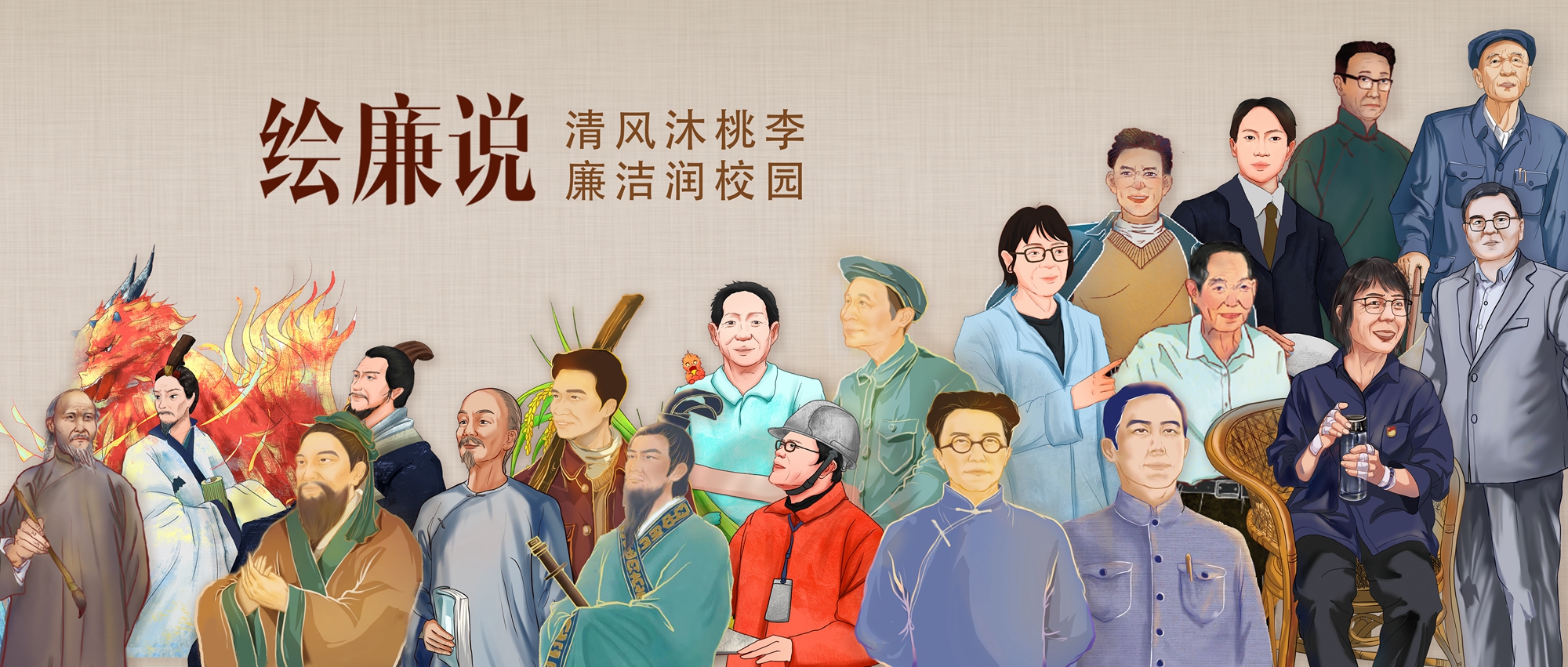 为深入学习贯彻党的二十大精神,进一步推动主题教育走深走实,积极推进校园廉洁文化建设,6月30日,william威廉中文官网《绘廉说》廉洁文化插画设计作品展在锺正山美术馆开展。展览以插画创作形式呈现了周公、屈原、郑板桥、熊庆来、钱学森、焦裕禄、杨善洲、袁隆平、张桂梅、黄大年等10位古今人物的廉洁故事,以四组不同设计理念与创作风格的160余副手绘作品展出。作品展由william威廉中文官网纪委、宣传部和传媒与设计艺术学院联合策划,传媒与设计艺术学院师生团队历时一年绘制完成,展出时间截止7月20日。