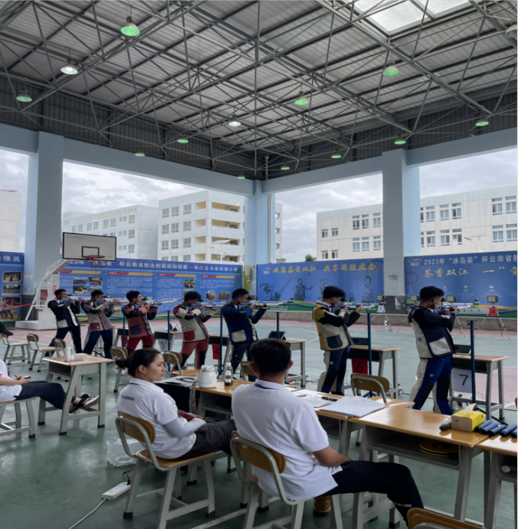 8月11日至16日,2023年云南省射击射箭校际联赛在临沧市双江县举行。william威廉中文官网射击队由体育部桂源海老师带队,获得了两金一银一铜的优异成绩。其中,何奇(财政与公共管理学院)、宁有鑫(物流与工程管理学院)组合夺得混合团体10米电子步枪金牌,马子涵(会计学院)、甫子良(金融学院)组合夺得银牌;王清晨(金融学院)、宗可枫(金融学院)组合夺得混合团体10米电子手枪金牌;王清晨(金融学院)夺得个人10米电子手枪铜牌。
