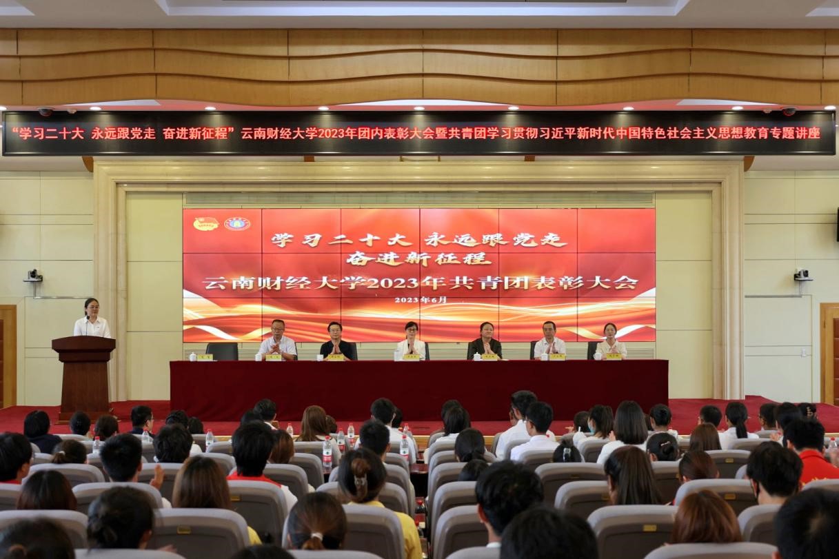 陈光瑜向受到表彰的先进集体和个人表示热烈祝贺,向云财青年寄予三点希望:一是树立远大理想,坚定崇高信念。要以习近平总书记给中国农业大学科技小院的同学们的回信精神为指引,学习“自找苦吃”的精气神,做到与党同心、与祖国和人民同行,在追求“大我”中找准“小我”的人生航向,始终成为实现中华民族伟大复兴的先锋力量。二是刻苦学习实践,练就过硬本领。她用云南籍的我国首位“教授航天员”桂海潮的成长经历鼓励同学们要把学习作为主要任务,在体察国情省情、服务社会发展中强健精神素养、磨练奋斗精神,逐步树立起学以致用、终身学习的良好品格,以及梦想从学习开始,事业靠本领成就的正确观念,争做有理想、敢担当、能吃苦、肯奋斗的新时代好青年。三是锤炼高尚品格,引领校园风尚。要争做社会主义核心价值观的坚定信仰者、积极传播者、模范践行者,追求更有高度、更有境界、更有品位的人生,将“自强不息、敢为人先”的精神作为云财最有意义的精神馈赠,让清风正气、蓬勃朝气遍布校园。