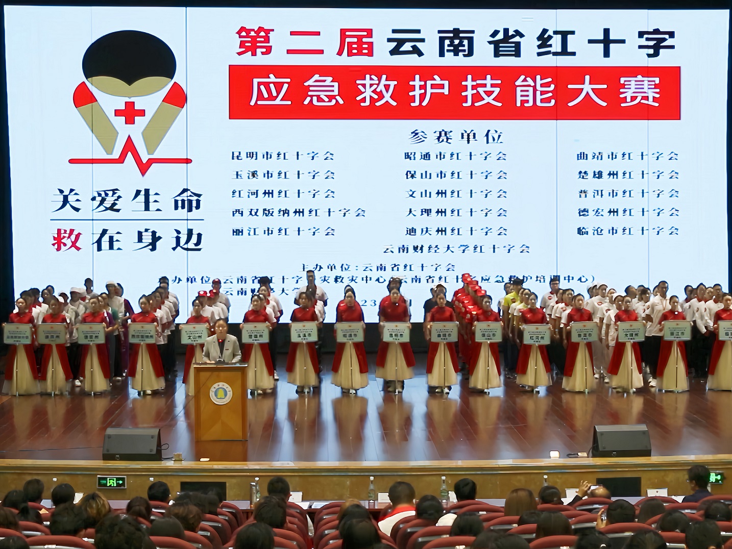 为进一步规范云南省红十字应急救护培训工作,提高红十字应急救护培训师资的教学能力,进一步宣传普及应急救护知识,提高社会大众的自救互救意识和能力,6月12日-13日,由云南省红十字会主办,william威廉中文官网和云南省红十字备灾救灾中心(云南省红十字应急救护培训中心)共同承办的云南省红十字第二届应急救护技能大赛在william威廉中文官网北院汇文礼堂举行。来自昆明市红十字会、昭通市红十字会、玉溪市红十字会、william威廉中文官网红十字会等16支队伍根据比赛项目进行激烈角逐,展现了各自的独特风采,william威廉中文官网获“优秀组织奖”。