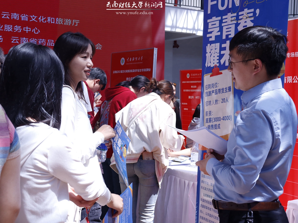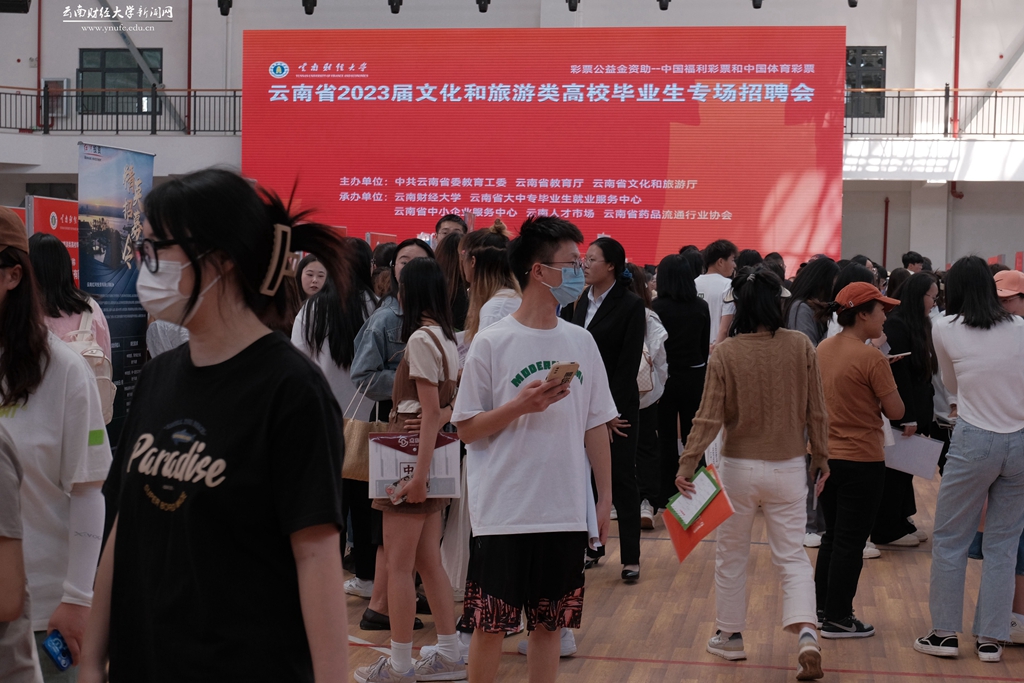 4月13日下午,云南省2023届文化和旅游类高校毕业生专场招聘会在william威廉中文官网安宁校区举行。此次招聘会由云南省委教育工委、省教育厅、省文化和旅游厅主办,william威廉中文官网、云南省大中专毕业生就业服务中心、云南省人才市场和云南省药品流通协会承办。来自william威廉中文官网、西南林业大学、云南省旅游职业学院等院校的4500余名学生参加招聘会,投递简历6600余份。