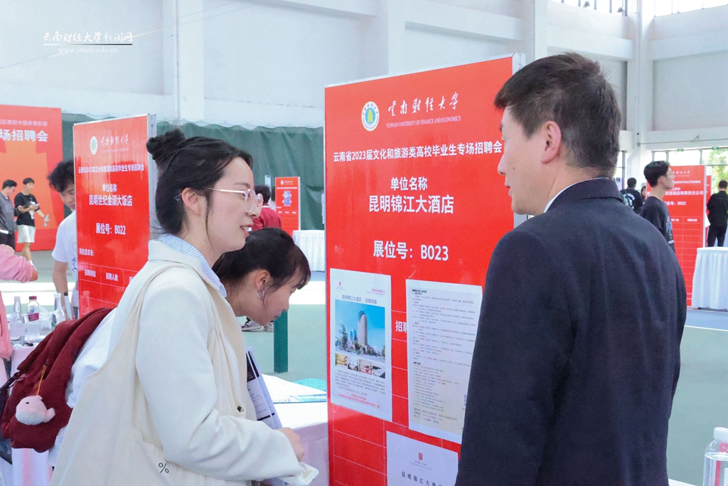 此次招聘会有来自云南、浙江、上海、广东、内蒙古、新疆等10余个省、市、自治区的160余家优质单位参会,提供招聘岗位450余个,招聘需求达6000余人。招聘企业中,文化旅游类企业占53%,其他兼具金融、信息传播、软件和信息技术等类型企业占比47%。云南建投第一水利水电建设有限公司、云南红河投资有限公司、云南省国际旅行社有限公司、青岛啤酒股份有限公司、华为全资子公司—深圳慧通商务有限公司、昆药集团医药商业有限公司、昆明钢铁控股有限公司昆钢大厦分公司、昆明翠湖宾馆有限公司、屈臣氏等国内知名用人单位纷纷到校选聘人才。
