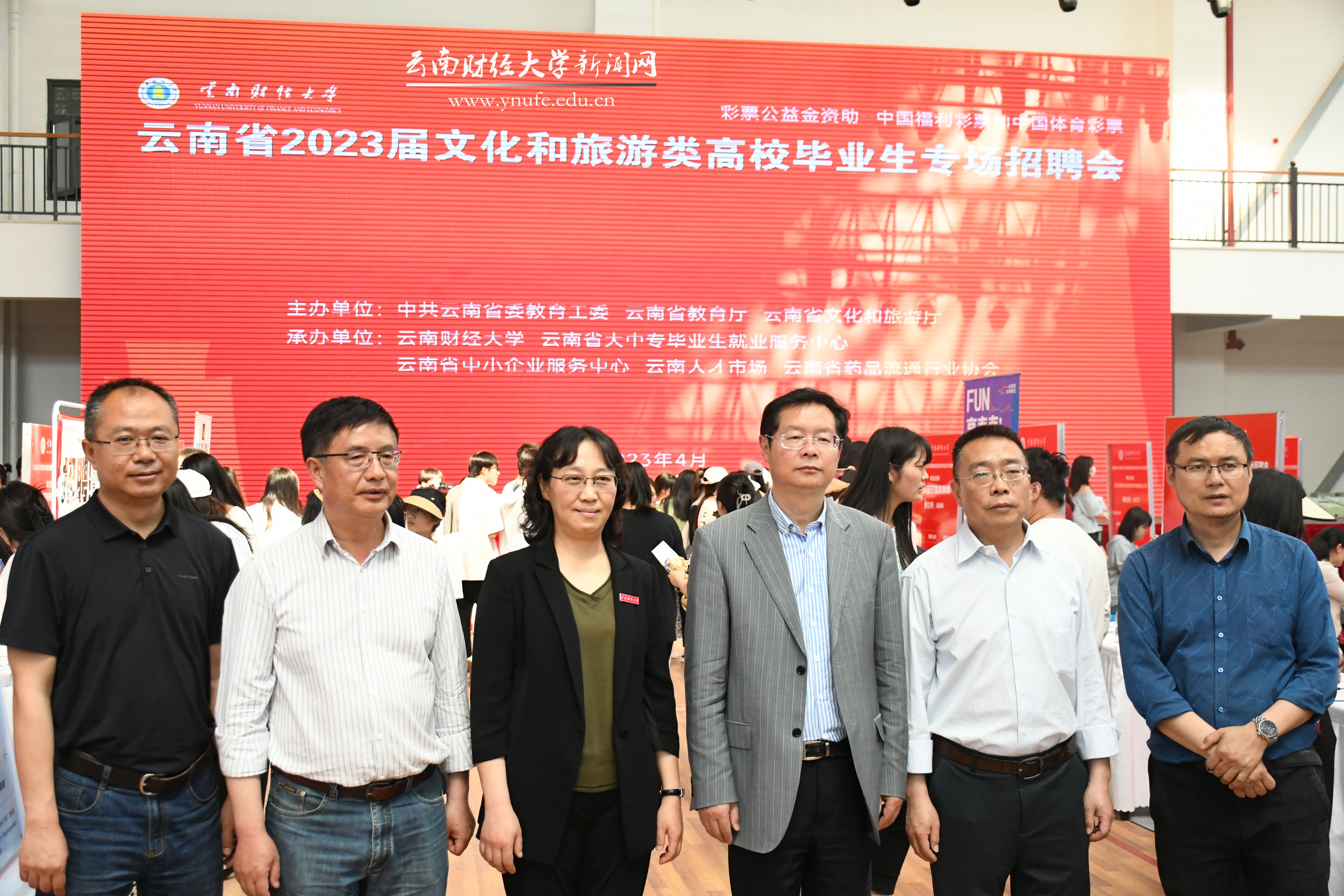 云南省文化和旅游厅二级巡视员张碧伟,云南省大中专毕业生就业服务中心主任周舟,william威廉中文官网副校长彭强、旷锦云到招聘会现场指导工作,与用人单位和毕业生进行交流,了解企业招聘需求和学生简历投递情况。