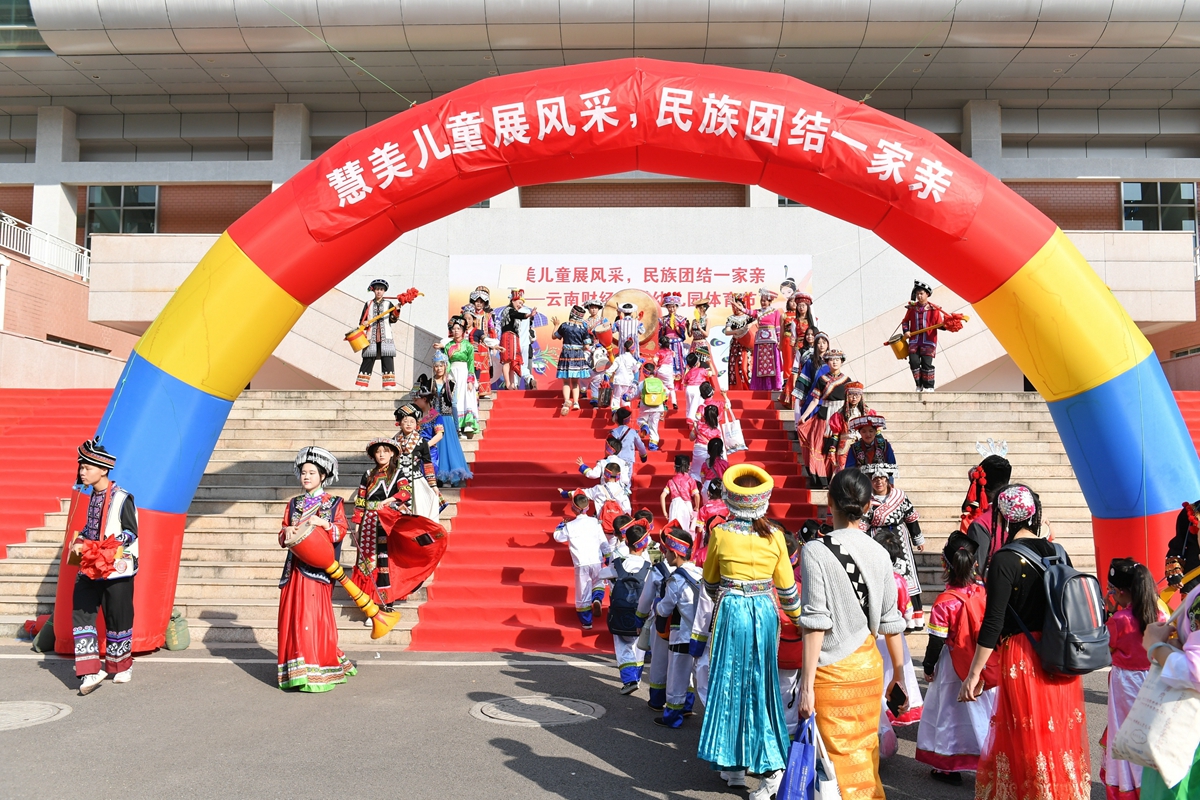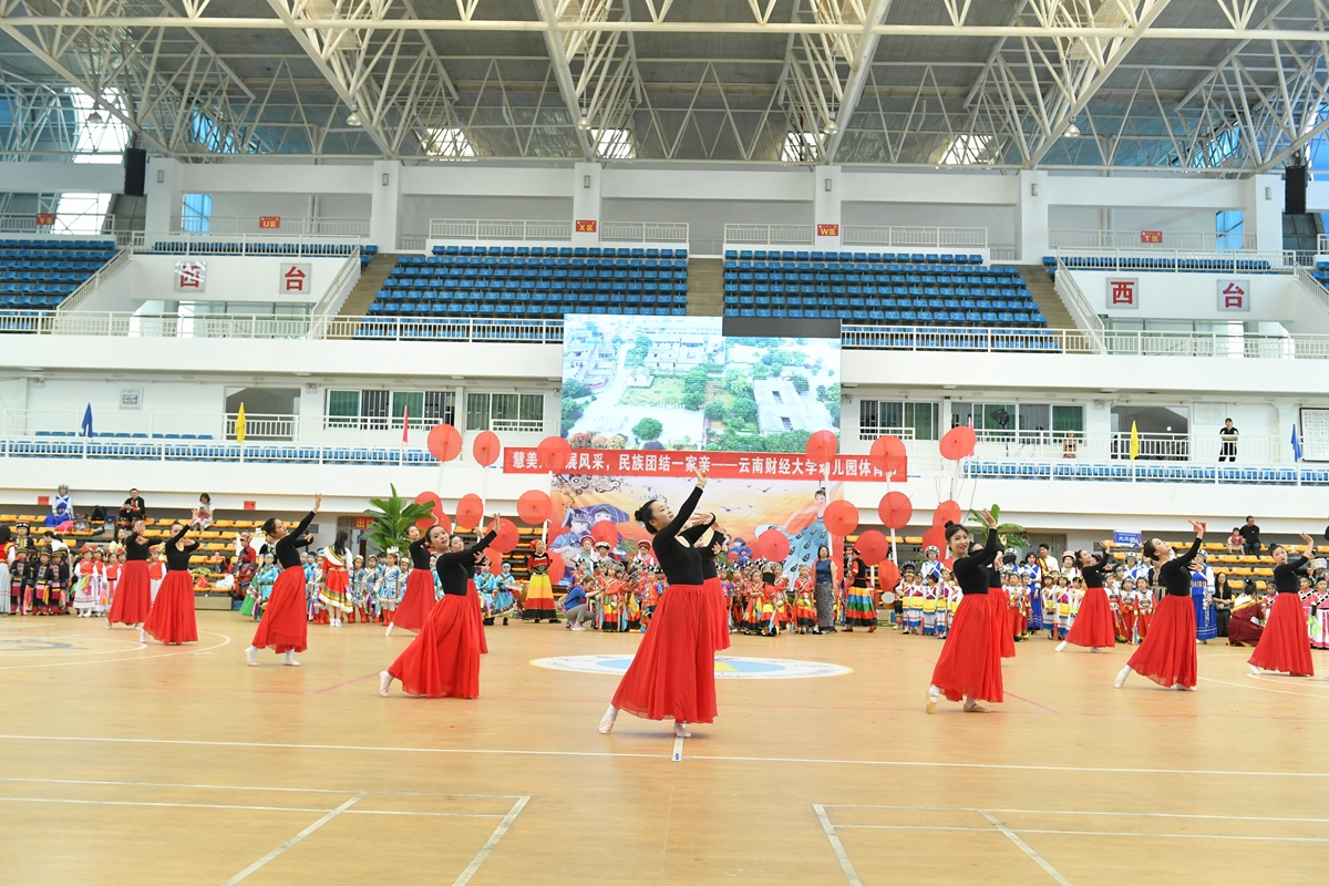 孩子们个个精神饱满、积极投入,分别展示了纳西族、景颇族、彝族、哈尼族、傣族等少数民族的幼儿早操;教师节目《威风霓裳》展现了体育精神;幼儿篮球、滑步车、花样跳绳等特色体育节目的展示赢得了现场观众的热烈掌声。