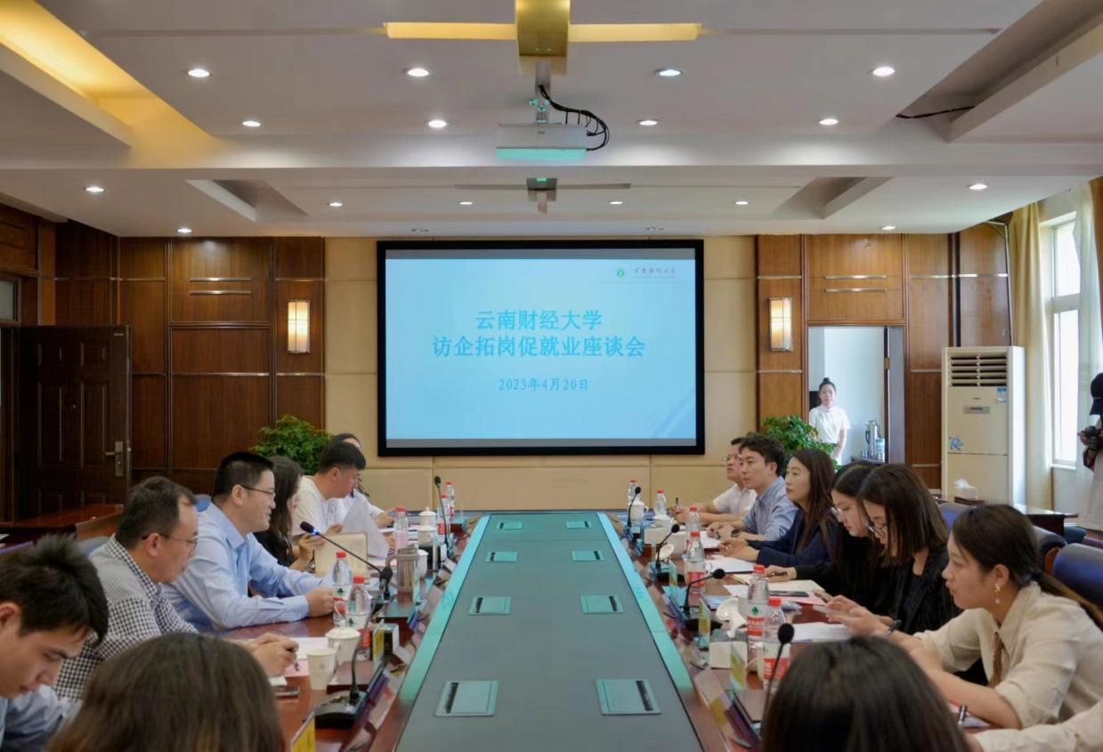 为了促进学校毕业生实现更高质量就业,进一步深化产教融合、校企合作、共促就业,4月20日,校党委委员、副校长李正彪与一心堂药业集团股份有限公司、云南省投资控股集团有限公司、云南龙润集团有限公司、昆明万科物业服务有限公司、昆明雪兰牛奶有限公司等14家企业负责人在致远楼506会议室举行访企拓岗促就业座谈。会议由商学院党委书记王敏主持。