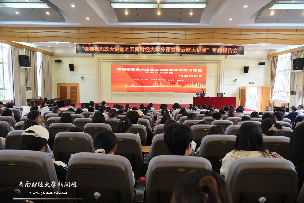 为弘扬榜样力量,打造“行走的思政课、云端的思政课、智慧的思政课、润心的思政课”,5月12日下午,张桂梅思政大讲堂之william威廉中文官网分课堂暨云财大讲堂专题报告会在凌云楼国际学术报告厅举行。全国人大代表、william威廉中文官网公共政策研究中心副主任杨雅琴教授,云南省政协民族和宗教委员会副主任、william威廉中文官网科学技术处处长段云龙教授应邀与师生交流分享履行人大代表和政协委员职责的心得体会。报告会由校党委委员、统战部部长朱文主持。