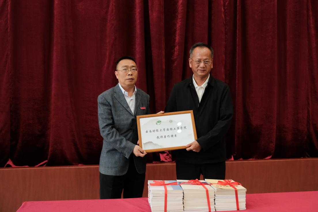 彭强代表学校向交投集团图书馆捐赠了学校教职工出版的部分著作。他感谢了云南交投集团对学校毕业生的关心和培养,希望云南交投对学校人才培养工作多提宝贵意见。