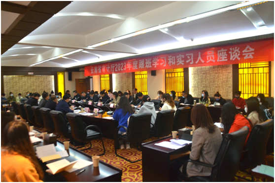 2月15日,云南省审计厅2023年度跟班学习和实习人员座谈会举行,我校副校长余怒涛应邀率队参加,云南省审计厅党组成员、副厅长张勇等相关领导和部门负责人以及全体2023年度跟班学习和实习人员参加座谈。